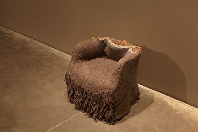 A case in point is the third floor, where Trockel’s wool paintings are on display. While they represent a major effort to endow a material associated with craft with the kind of cultural significance too long enjoyed solely by painting and sculpture, for the most part they struck me as soporific. The lumpy wool sculptures on hand in the same gallery, however, possess a magnetic, messy realness a world apart from the paintings’ academic tedium.