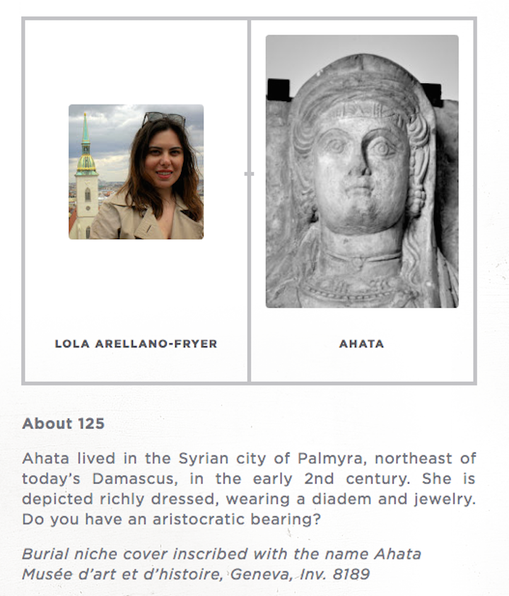 But I needed a larger pool of participants. So I requested that everyone at Hyperallergic drop their far less important duties and test out the recognition tool as well. Below, their selfies and ancient doppelgängers — from more unknown women and men to the Syrian aristocrat Ahata — speak to the farcical failures of this facial recognition experiment.