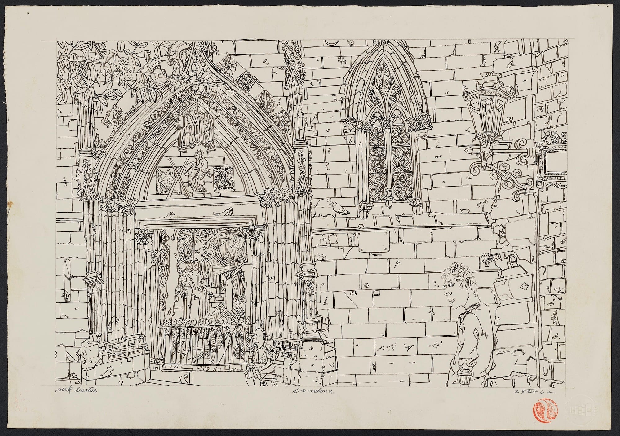 Barton is essentially a diarist chronicling the highs and lows of his life, his love of classical music, his visits to Mexico and Barcelona, and his feelings of both desire and isolation. Although he was particularly interested in church facades and interiors, he seemed to draw whatever was in front of him wherever he was; it was his way of organizing the interior and exterior chaos of his life.