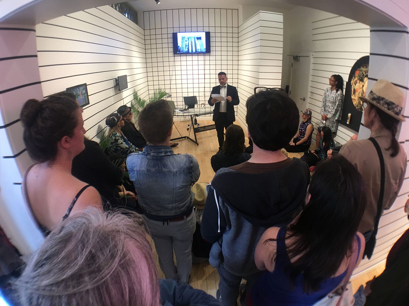 My love for the internet informs my practice and certainly informs the creation of Fantasy Island. I didn’t go to art school. My art making is informed by my social and professional practice, as well as self-led research and artistic collaboration. I like concept, intimacy, and immersion — that’s why I love performance and installation, especially full-room, immersive experiences. Installation and internet art allow us to practice our agency through remix culture; we can challenge systems of oppression. Vaporwave and A.E.S.T.H.E.T.I.C. are subversive, visually and aurally. They shine light on the idea of failed white progress and obsolete modernism. To me, they are an acceptance of failure, a swan cry in the face of hypercapitalism. This was our perfect future? We laugh out loud through silent GIFs.