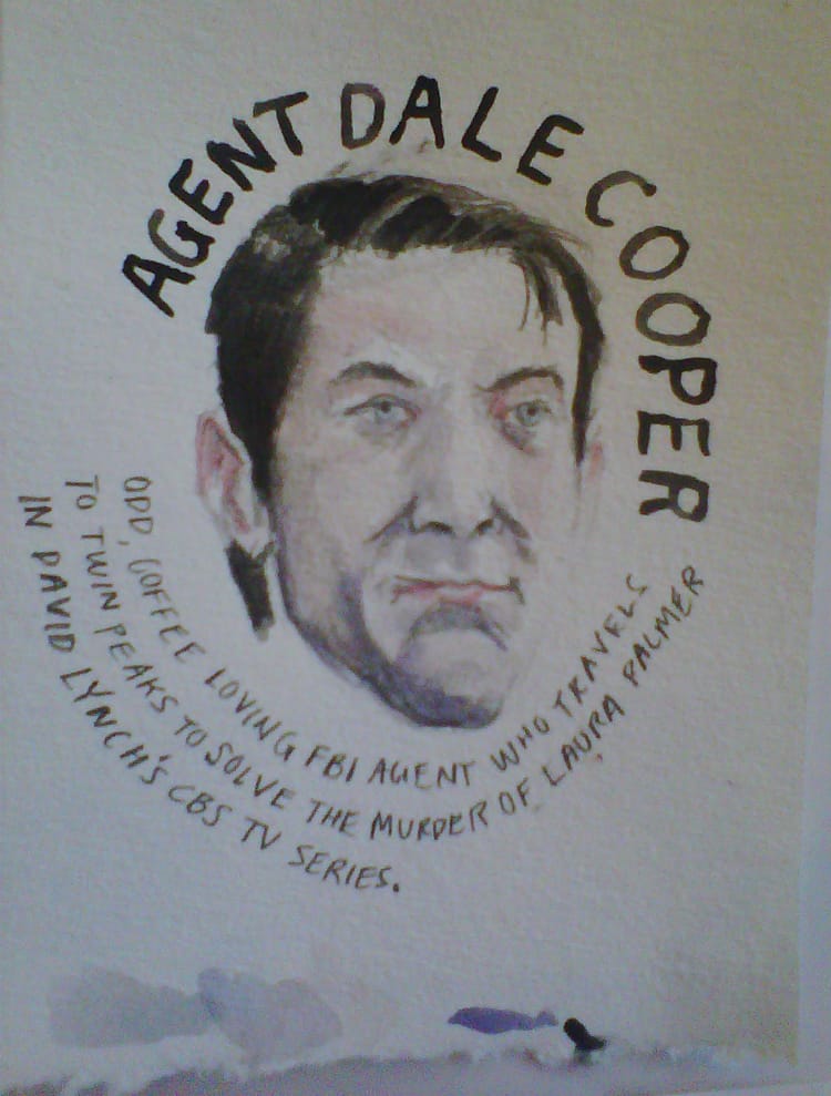 After we relocated, I placed completed individual drawings on larger paper and invited visitors to the art center to share their memories, to add to and begin a dialog. On a drawing of Mark David Chapman, someone added a caption, “You wouldn’t be crying if you’re own father had been shot when you were five.” A woman stopped today and looked at a drawing I had done of Rod Sterling. “Oh no, it’s Serling,” she corrected me. “He’s a fascinating figure. He was influenced by his experience in World War II. He talked about how an air drop landed on a man standing next to him. It made him write about twists of fate in this stories.”