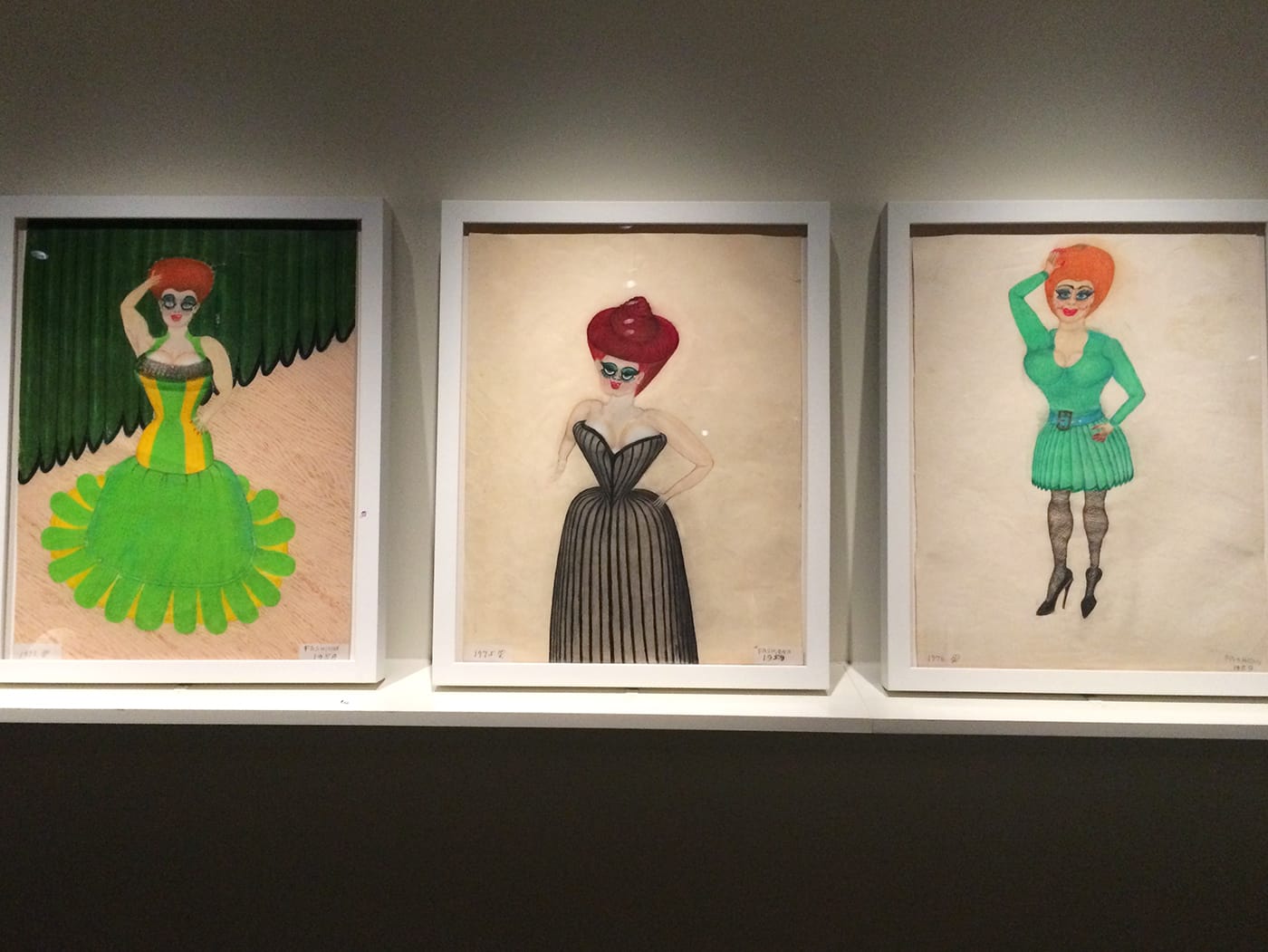 Some secrets, like Marie’s portrait sessions, are sinfully delightful to behold for their unimpeded airing of desire. A series of drawings by Edwin Lawson from the 1970s is joyous for its celebration of identity: the cartoon-like pictures of a jocular, busty redhead in vividly colored, elegant outfits are actually self-portraits by Lawson, an architecture professor at the University of Cincinnati who apparently let an alternative vision of himself loose on the page. His widow learned of his cross-dressing fantasies only when she found the drawings after his death.