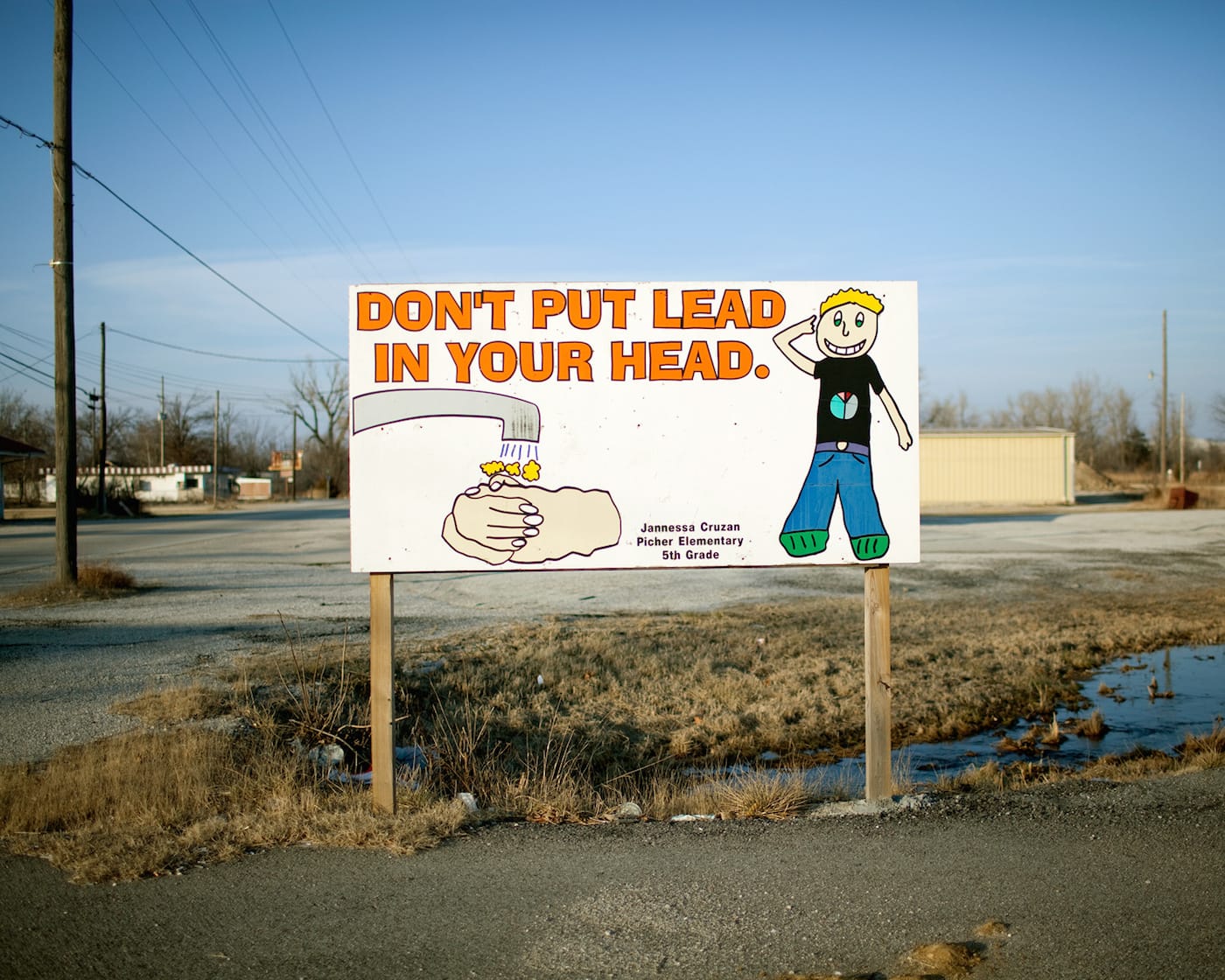 As is often the case, after the companies departed in the 1960s and ’70s, leaving the environment of the Tri-State Mining District that stretched into Kansas and Missouri depleted of its resources, the economy of the area never recovered. By 1973, contaminated water was seeping from the 1,400 mineshafts below Picher. Information about the dangers of the chat piles was slow to be shared with residents, whose children were allowed to play in sandboxes of the powdered ore, and driveways and foundations for homes were poured with the mine tailings. Time magazine reported in 2004 that over the previous decade, “up to 38% of local children have had high levels of lead in their blood.”