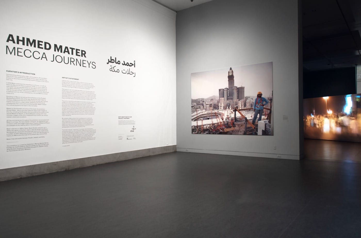 Ahmed Mater: Mecca Journeys at the Brooklyn Museum is an exhibition that examines the confrontation between the authentic and imagined Mecca, and of pilgrims with the tourism industry.