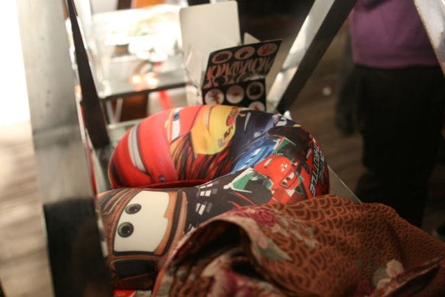 What was haphazardly arrayed on the tables and shelves of the “Free Store” was not high-fashion treasures or sketches by famous artists, but the usual range of tchotchkes that might be found at any local junk shop or thrift store: hand-held weights, old dresses, some secondhand lamps (those may have been the highlight), and a neck pillow printed with characters from Pixar’s movie Cars. The objects left over at the end of the store were to be donated to a local thrift joint.