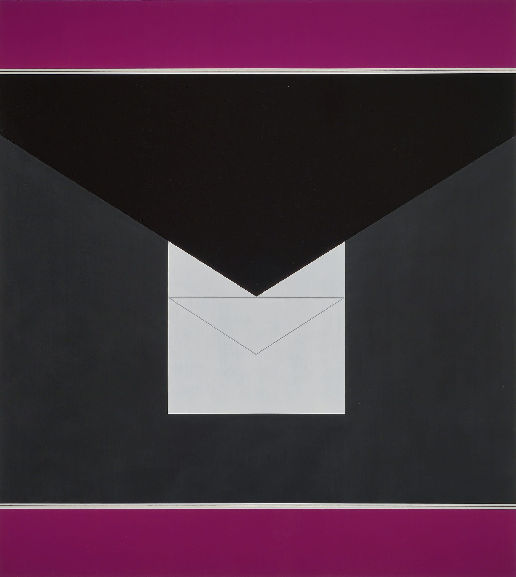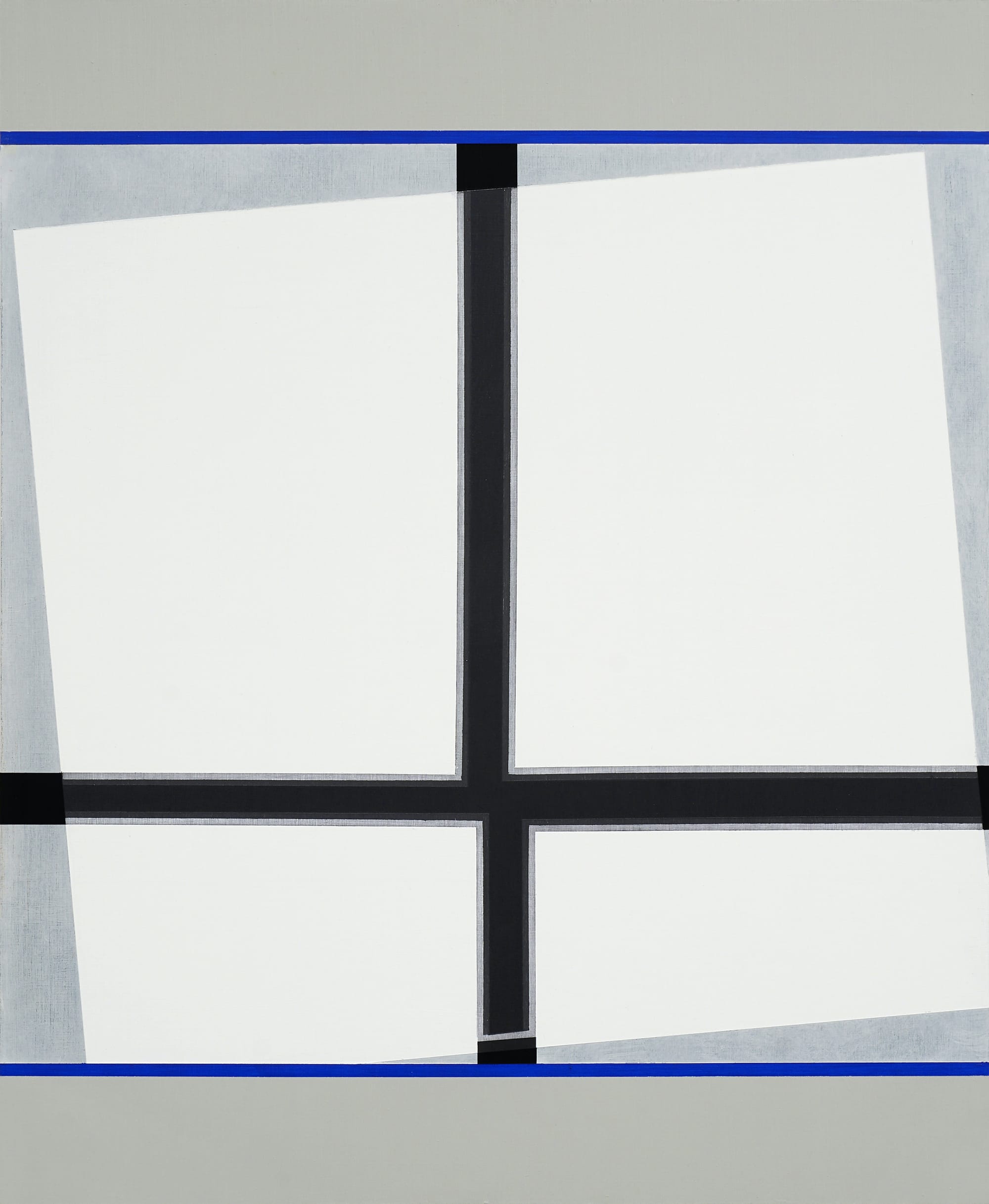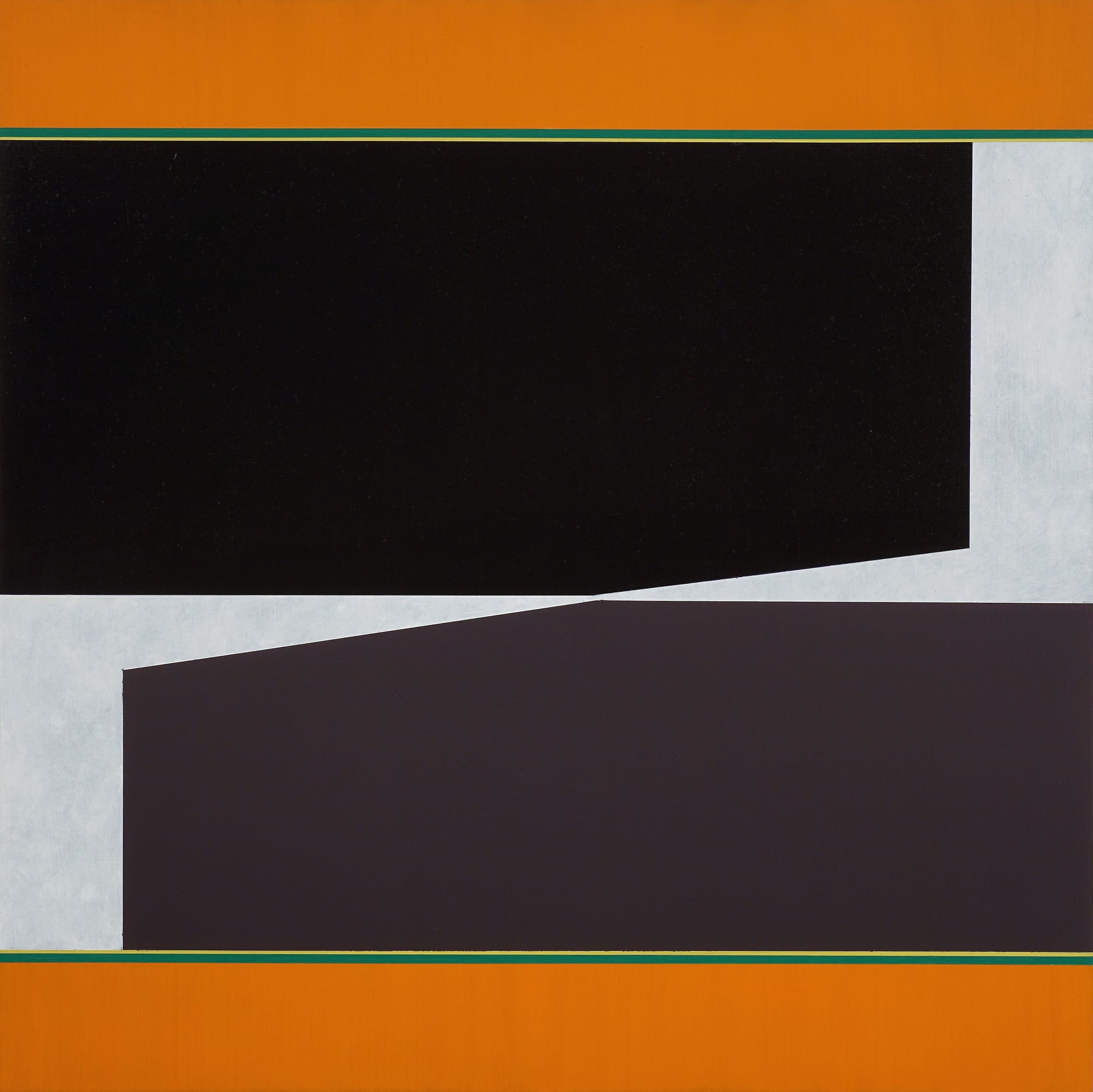Voisine’s paintings were precisely delineated compositions where everything was considered, from the use of matte and shiny paint to the direction of the brushstroke, the solidity or transparency of the overlaid planes, the interaction between the black forms and white spaces, and the relationship between the black and white interior and the colors and bands pressing in. Perhaps because of his attention to composition and the particular elements of his work, and despite all the constraints he imposes, what singles Voisine out from other geometric abstract artists is that he remains a restless painter, capable of surprising his most ardent fans. This is why I saw the exhibition Don Voisine at McKenzie Fine Art.
