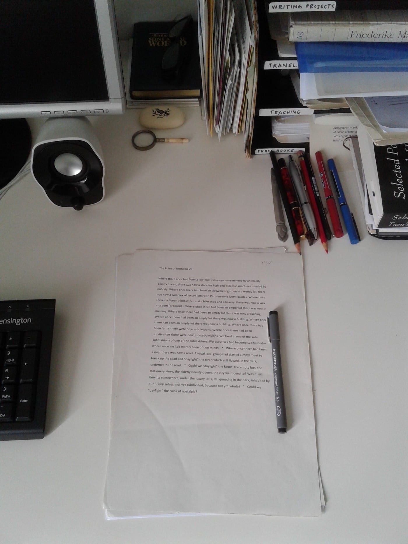 My feeling that Stonecipher has become a major poet, an innovator who writes in concise, sparkling language, was emphatically reinforced when I recently heard her read in Berlin from an unfinished manuscript, The Ruins of Nostalgia, which consists of more than 65 prose poems and does not yet have a publisher. The reading took place in a courtyard and the other readers were Barry Schwabsky, Matvei Yakelevich, and myself. In addition to publishing Stonecipher’s translation, I have published books by Schwabsky and Yankelevich.