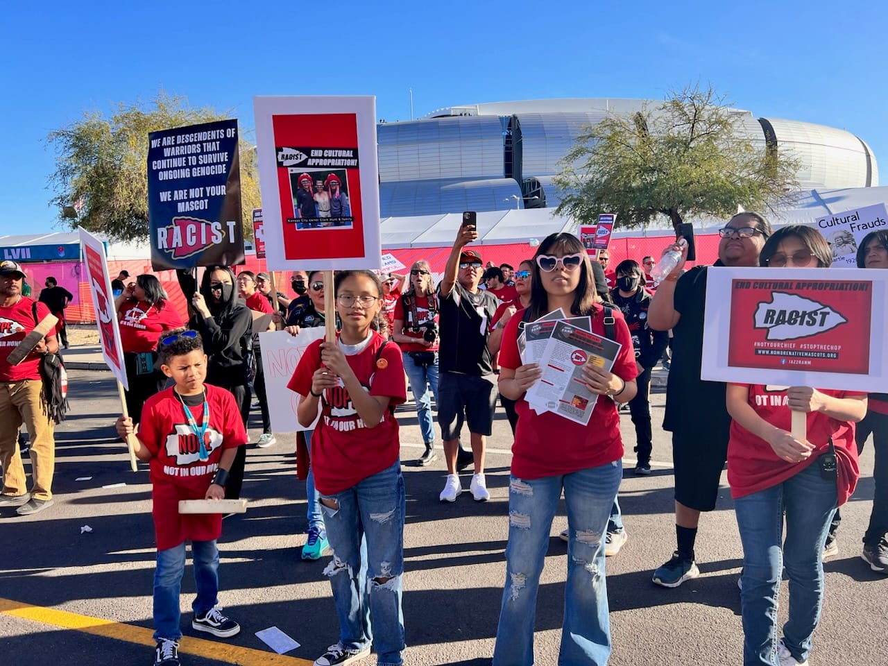 A group of Native artists and others held a protest outside the stadium in Glendale, Arizona, where the Kansas City Chiefs and the Philadelphia Eagles competed for the championship.