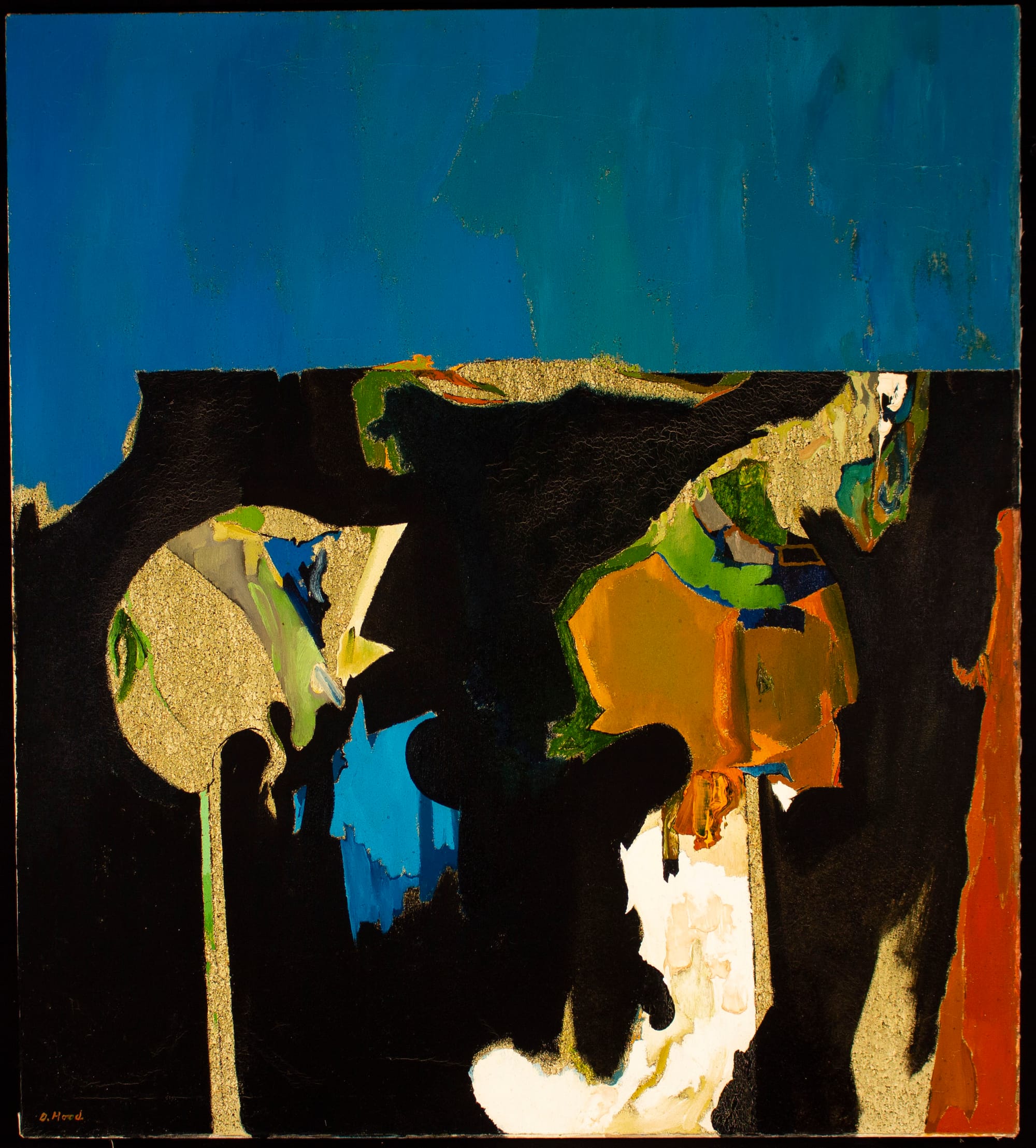 Born in 1919 in Bryan, Texas, Hood is considered by some to be one of the first American abstract surrealist painters. Her work bridges a plethora of art schools and traditions, emphasizing abstract landscapes as well as the human psyche. Inevitably, it demonstrates — conceptually and visually — strong ties to those decades spent in Mexico as well as her willingness to experiment with painting on an enormous scale.