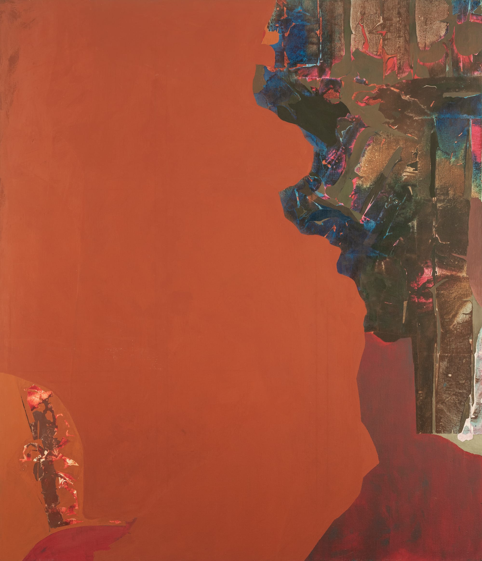 Hood’s work is often contextualized and understood by her proximity to better-known members of her circles. In the exhibition, we learn that she painted with Frida Kahlo, for instance; that her husband was the great Bolivian director and composer José María Velasco Maidana; that the famous Chilean poet Pablo Neruda called her the “Amazon of Manhattan.” (“There is in the painting of Dorothy Hood this desperate interrogation, an aesthetic of human pain which runs through the path of all the arts,” Neruda offered.) It can seem as though her legacy comes from how others shine light on Hood to prove that she “ought” to finally get her due. (“The art world, however, is a forgetful place,” Kalil wryly notes in The Color of Being/El Color del Ser of Hood’s stochastic reception.) The fact that her supporters are still struggling to ensure that she gets her due shows just how complex it is to build a legacy as an artist.