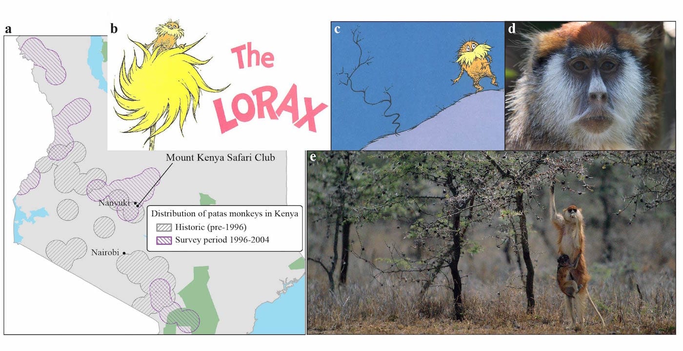 I mentioned that to Don mainly as a means of creating some idle small talk. And he revealed that Dr. Seuss has been to Kenya, that he traveled there. And in fact, he actually went to the Laikipia Plateau where there’s a very exclusive private club. And so once he said that, then all the pieces fit together and we basically hashed out this essay over the course of the dinner to make the argument that he almost certainly saw these monkeys when he was there — they have a very patchy distribution, but they happen to be relatively common in the area that he was visiting — and how once you take into account the ecology of the monkeys, then many of the themes that we see in The Lorax make a lot of sense.