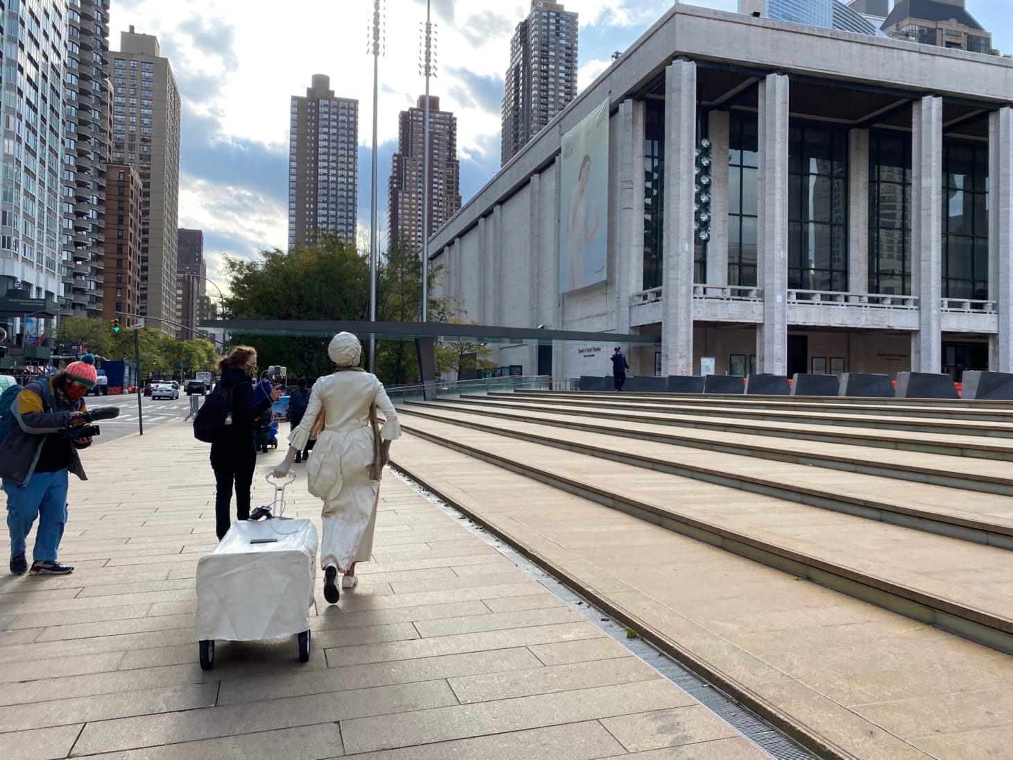 Dragonfly continues her promenade toward Lincoln Center. A print-out about the performance explains that the site used to be known as San Juan Hill, in honor of the African-American and Latinx veterans of the Spanish-American War who lived in the neighborhood; the Center’s construction in the 1950s displaced more than 7,000 lower-class families and 800 businesses.