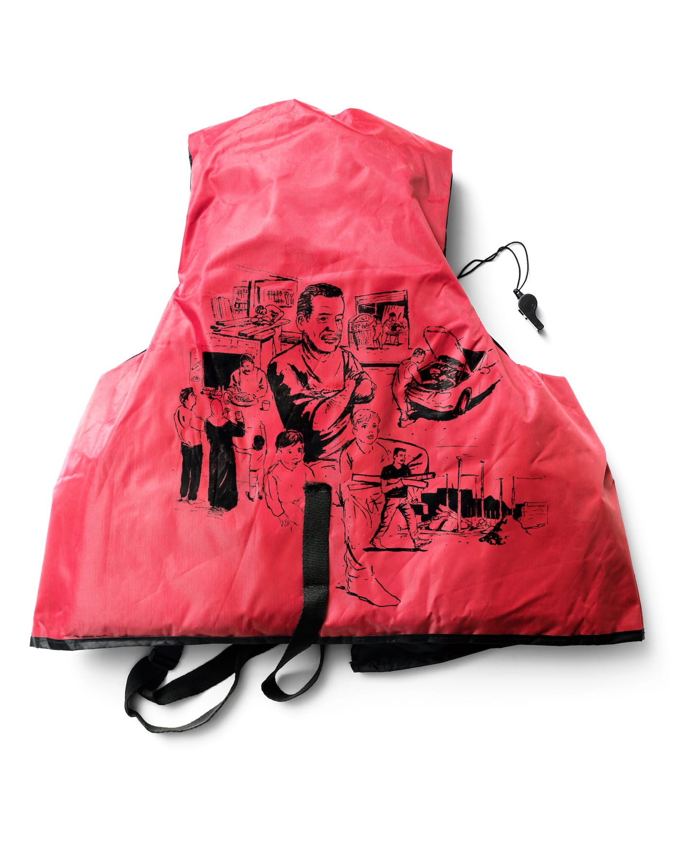 Although the scenes drawn onto the life jackets are “normal,” they are far from unremarkable. In a way, they serve as metaphorical flotation devices, keeping alive memories for their owners to hold onto while confronting an uncertain future. And for the rest of us, they’re a reminder of the joys we experience and the opportunities we have every day, many of which we likely take for granted.