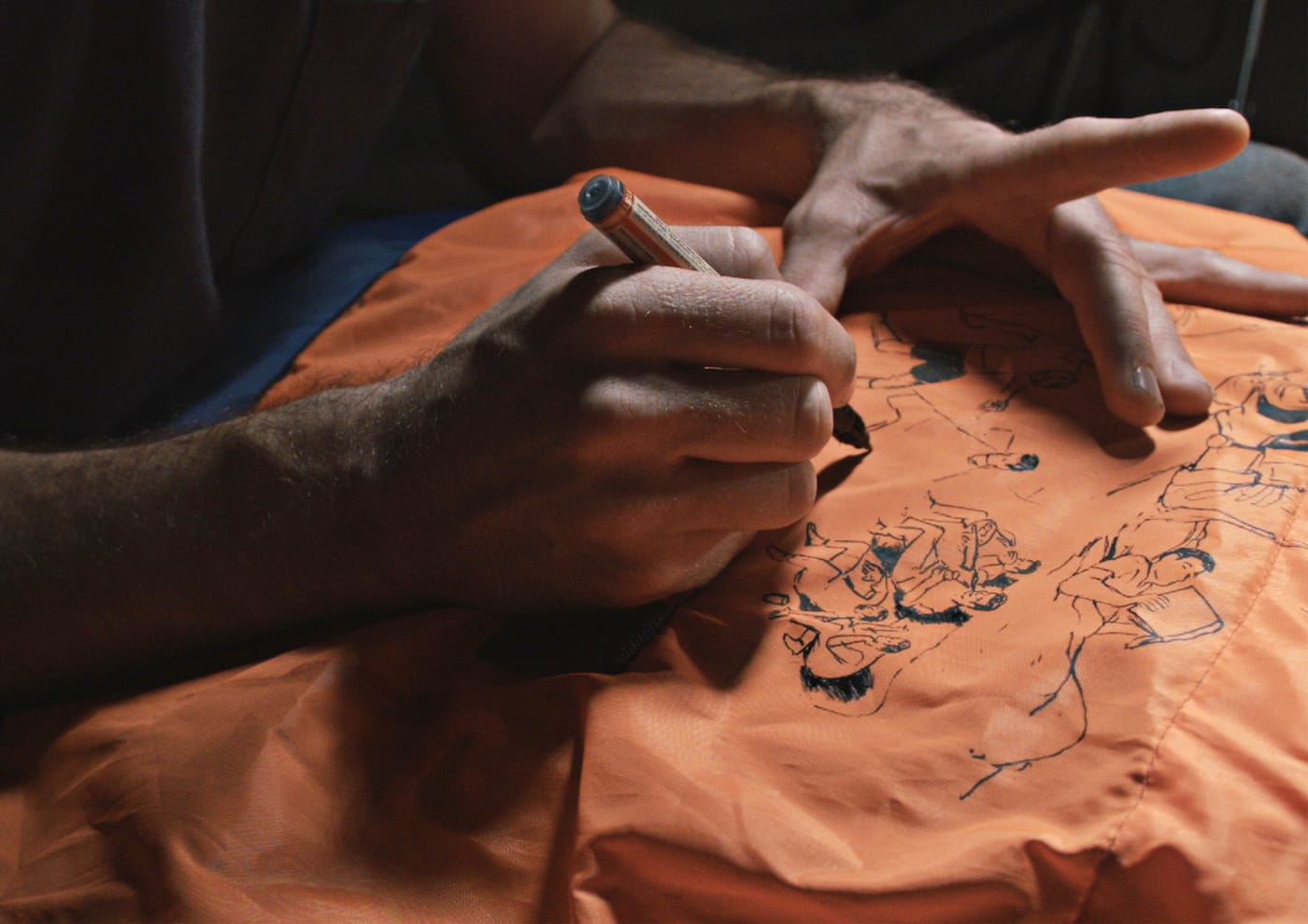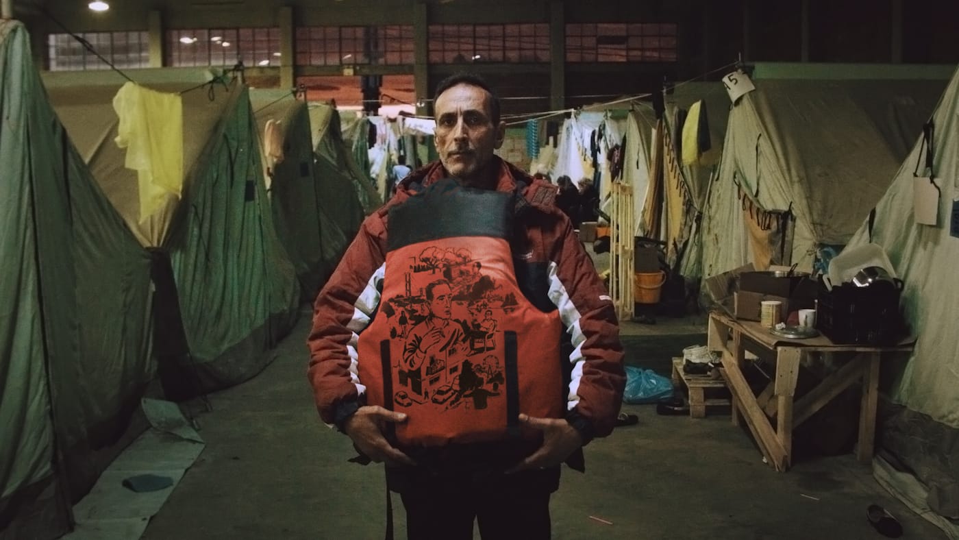 The refugee camp in Thessaloniki, Greece — a former textile factory repurposed earlier this year — shelters a constantly shifting community of people who have fled their homes. Recently, a group of NGOs led by the Voice of Thousands visited the camp, where volunteers met nine Syrian refugees and interviewed them about their lives before the war. Their stories were recorded on video, but also illustrated in ink drawings that unfold on the backs of nine life jackets.