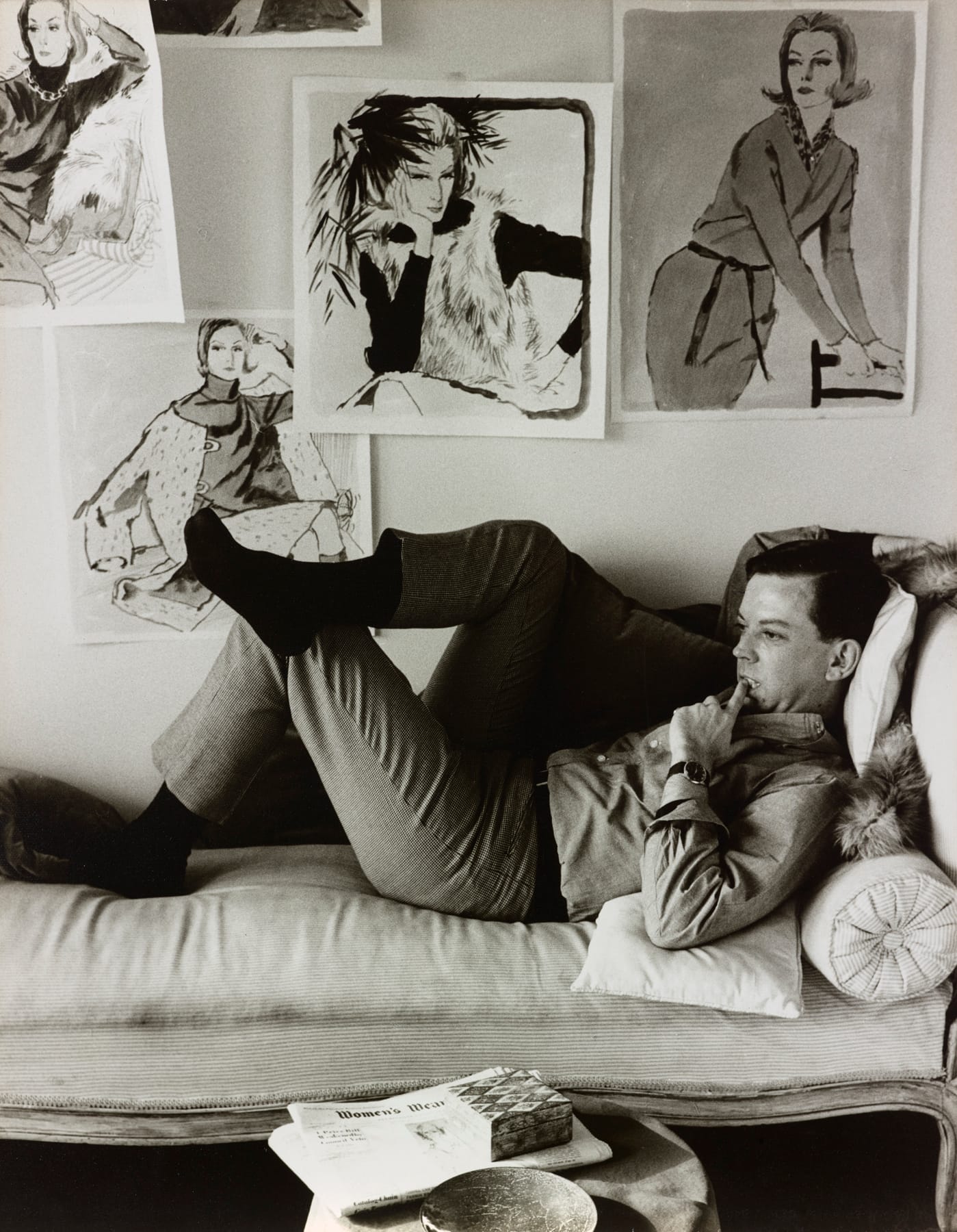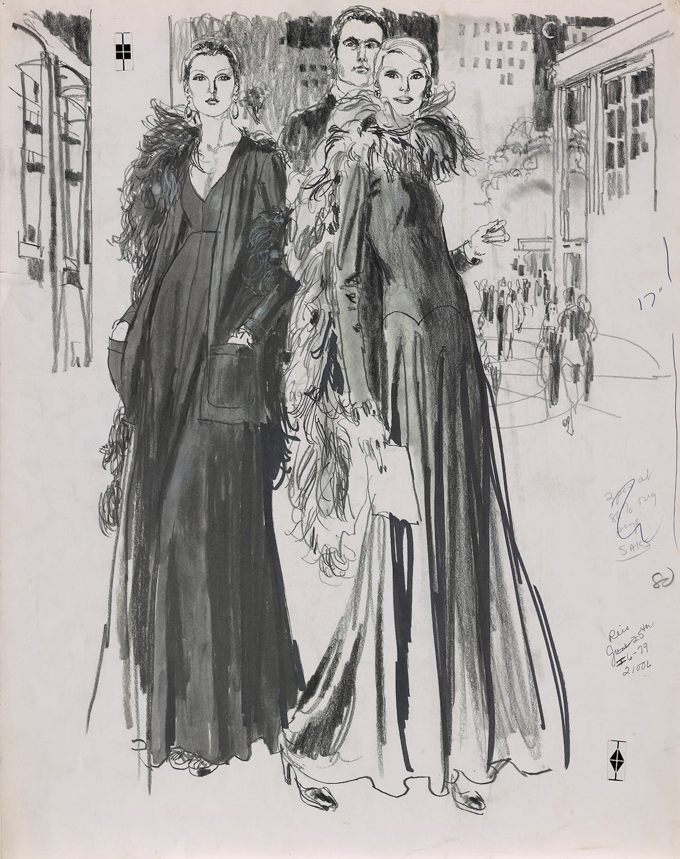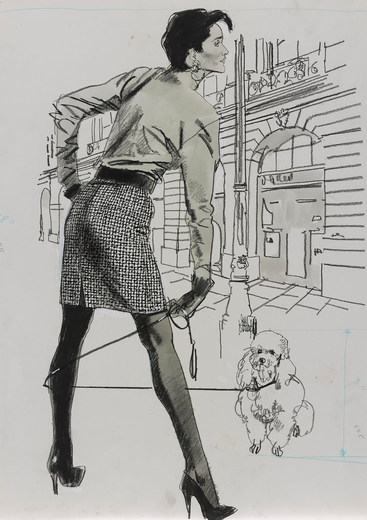 With 100 works from 1950 to 1990 on display, there is a remarkable absence of models of color — not every customer was invited to taste the life of luxury. Howard conceded that illustrations with brunettes would often be sent back to be made blonde, but recalled being the first to illustrate black and Hispanic women for Bonwit Teller, though these drawings are not included in the exhibition.
