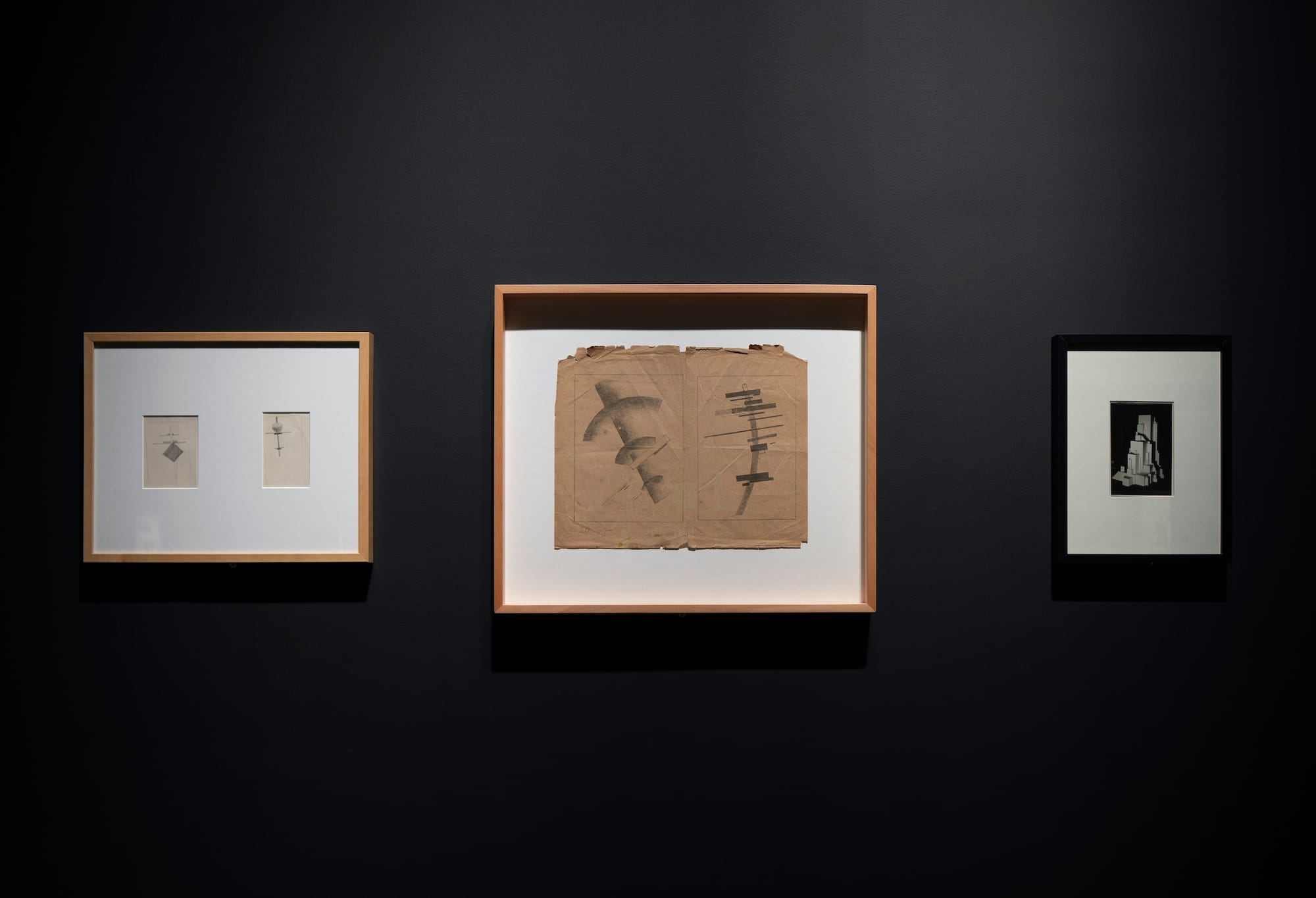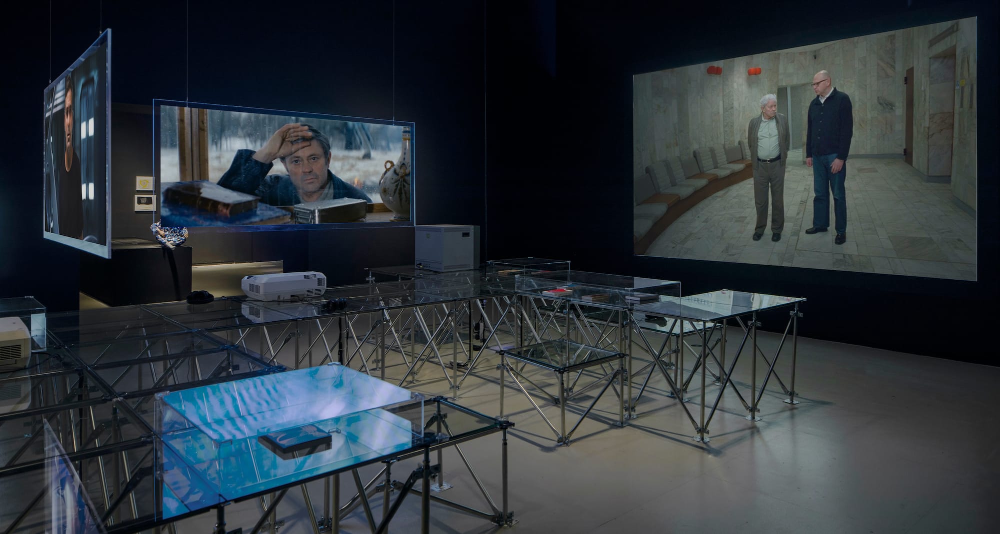 Several intriguing shows-within-shows mainly highlight how 20th-century thinkers and artists imagined a cosmic future — in one dark room is part of the collection of George Costakis, who in the 1920s amassed a number of avant-garde works by Russian Constructivists such as Malevich and Rodchenko; these and other artists’ wonderful abstract-figurative drawings and paintings on view here include telescopes and robots. Another space is dedicated to interpretations of Solaris, the 1972 Soviet sci-fi film based on Stanisław Lem’s 1961 novel. (The show’s one performative piece, Arseny Zhilyaev’s “Shanghai Operations Room,” 2023, also riffs on a sci-fi classic: the empty yellow rooms refer to the "god room" in Stanley Kubrick’s 2001: A Space Odyssey.)
