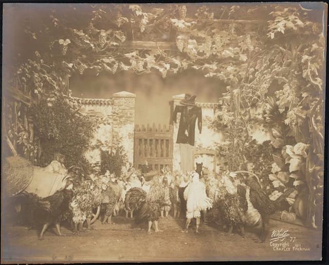With support from the Institute for Museum and Library Services, MCNY has taken on digitizing over 30,000 images of more than 5,000 Broadway shows from their theater production archives. Lissa Rivera, who’s been working on the imaging, wrote an extensive blog post on one of the more curious finds in the project: photos from the 1911 Broadway production of Chantecler. Written by Edmond Rostand, the show features only animal characters, centering on a rooster named Chantecler who believes his morning song brings the dawn. A pheasant in the forest attempts to win his love, but his heart ends up staying with the farm. Rivera explains that the play followed 10 years of writer’s block for Rostand and was met with some public disturbance “that such an elaborate production featured chickens.” Furthermore, “the American version was surrounded in controversy over the casting of a woman (Maude Adams) as the male protagonist.”