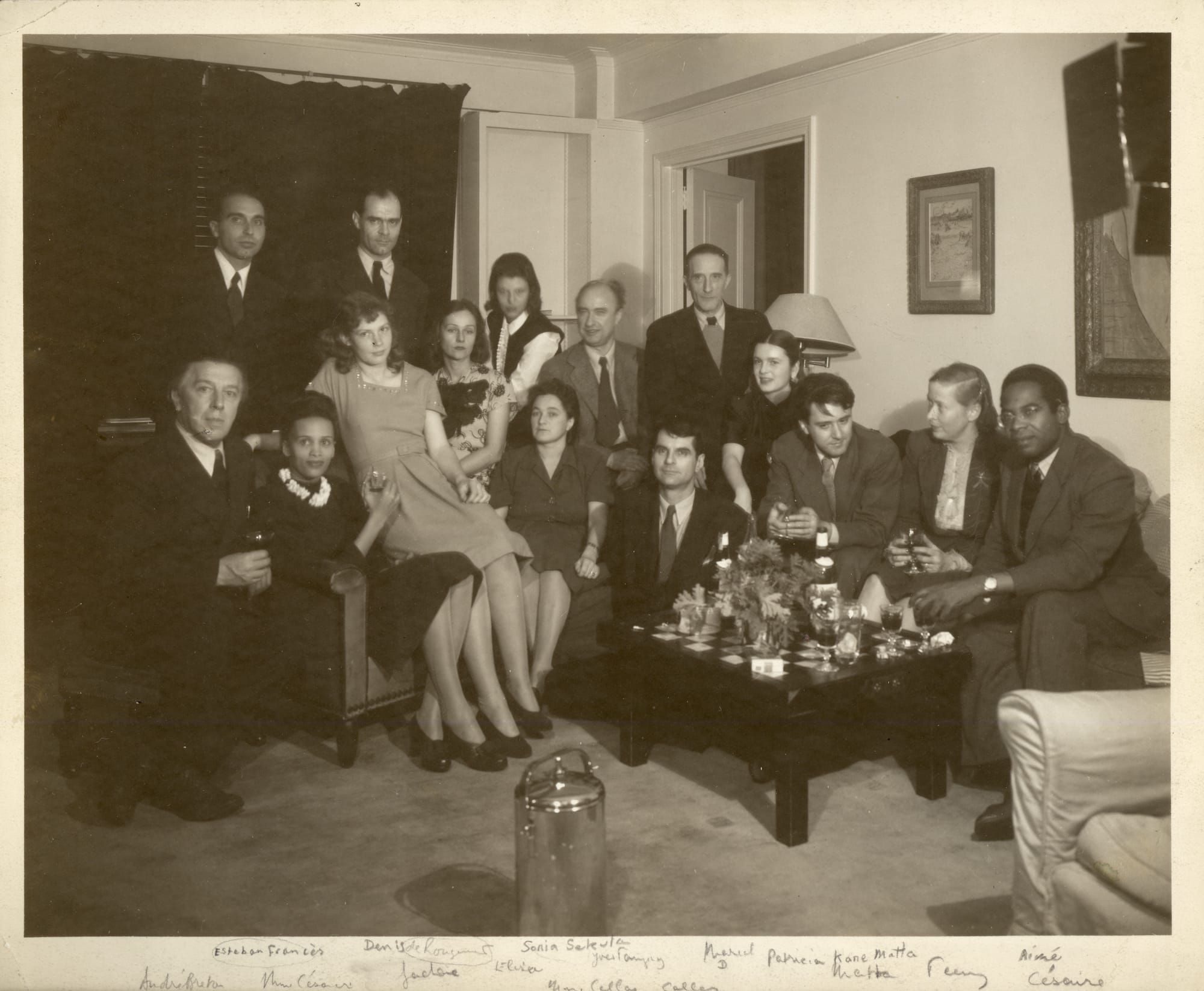 André Breton, Esteban Frances, Suzanne Césaire, Jacqueline Matisse-Monnier, Denis de Rougemont, Élisa Breton, Sonia Sekula, Madame Nicolas Calas, Yves Tanguy, Nicolas Calas, Marcel Duchamp, Patricia Kane Matta, Matta, Alexina "Teeny" Matisse and Aimé Césaire, New York, November 20, 1945 (courtesy Philadelphia Museum of Art)