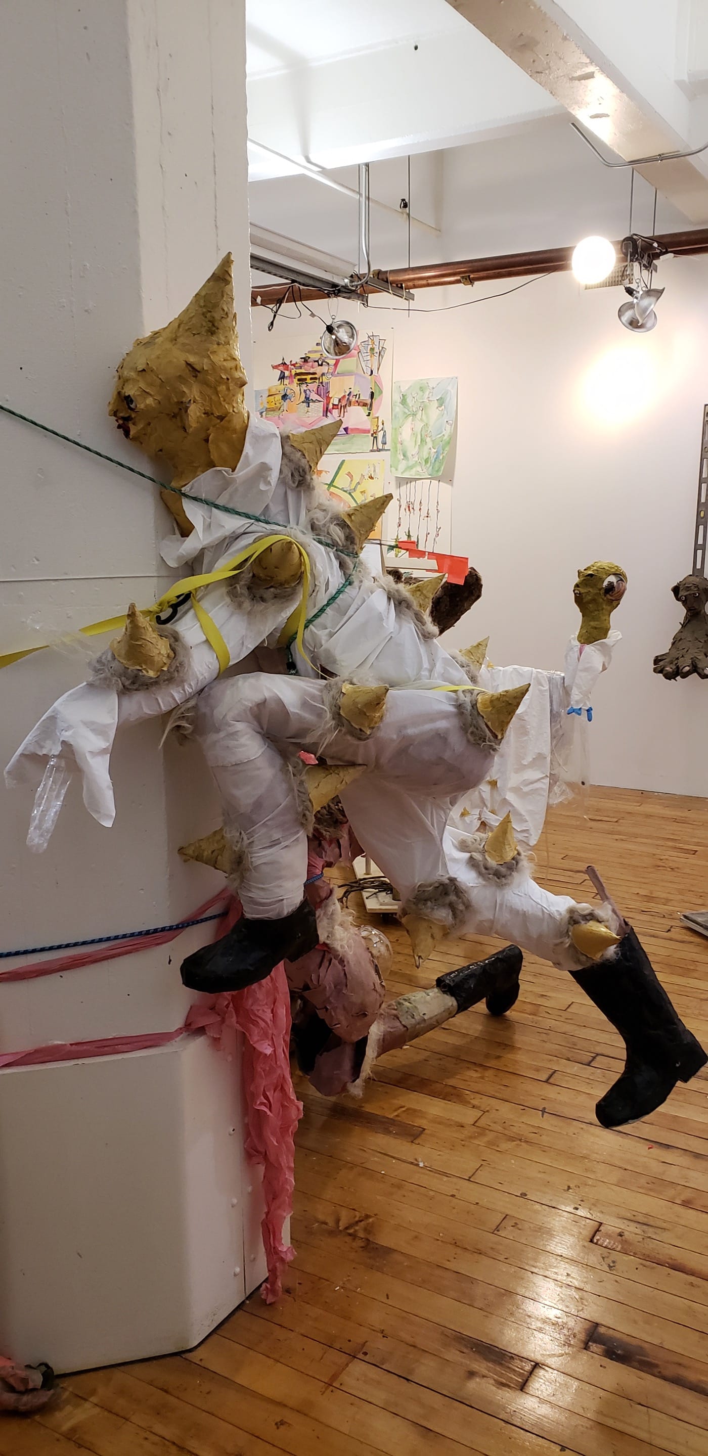 At the Sharpe Walentas Studio Program, Laura Bernstein took the figure into macabre territory with her explorations of the idea of the cuckold. As she told me, in Shakespeare’s work men whose wives were unfaithful sprouted horns in their bodies, so she sculpted figures that represent what that nightmare might look like embodied.