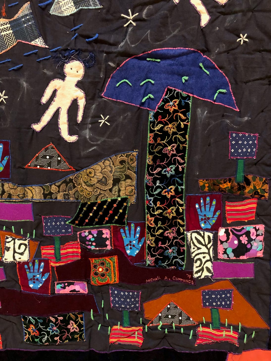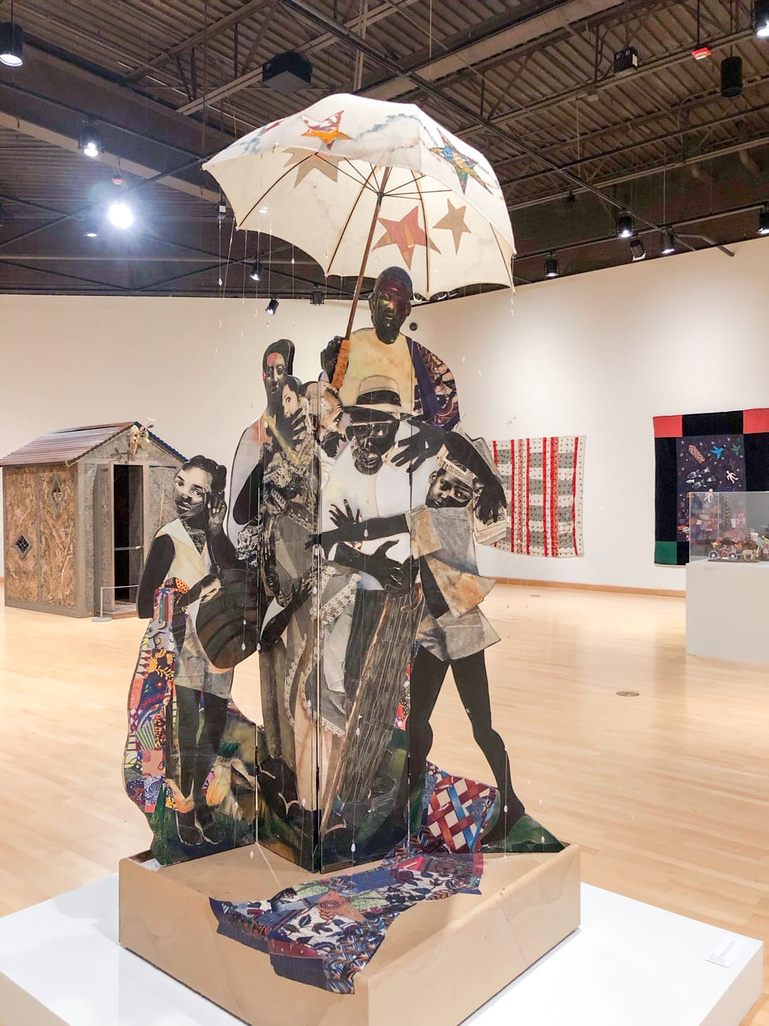 In this convening of vernacular art, you’ll often find the application of found objects and nods to domestic work in the brilliant use of textile. Throughout Dust My Broom, the artists’ works speak with one another with earthy hues and cerulean blues, like bright skies and coastal waters.