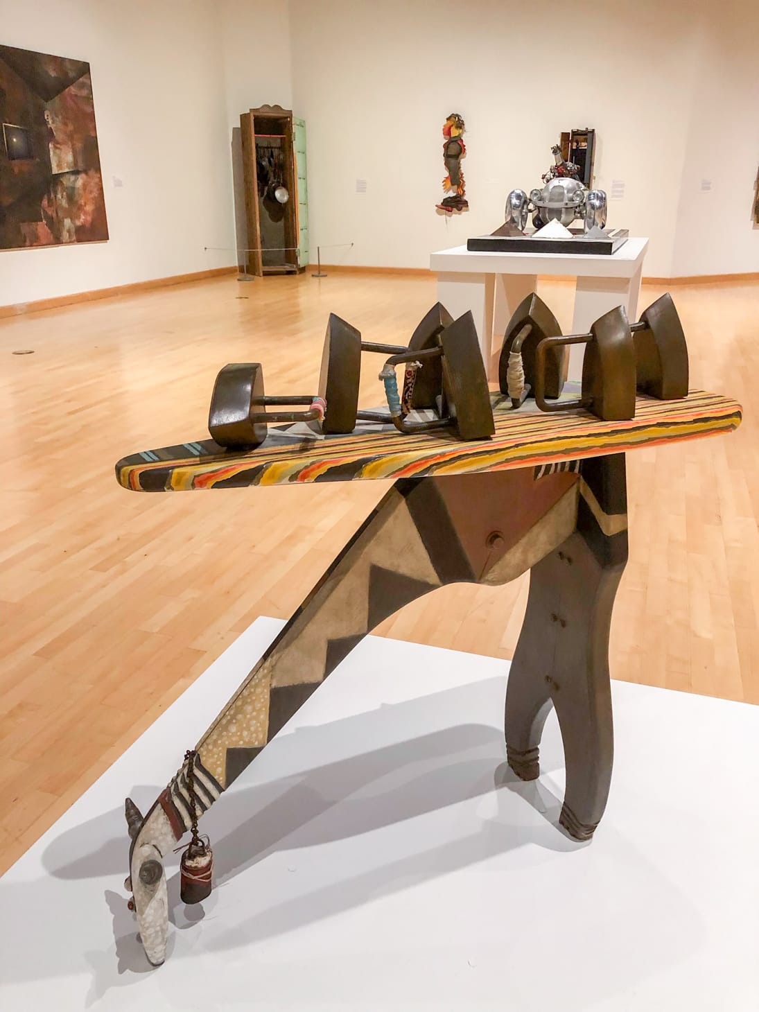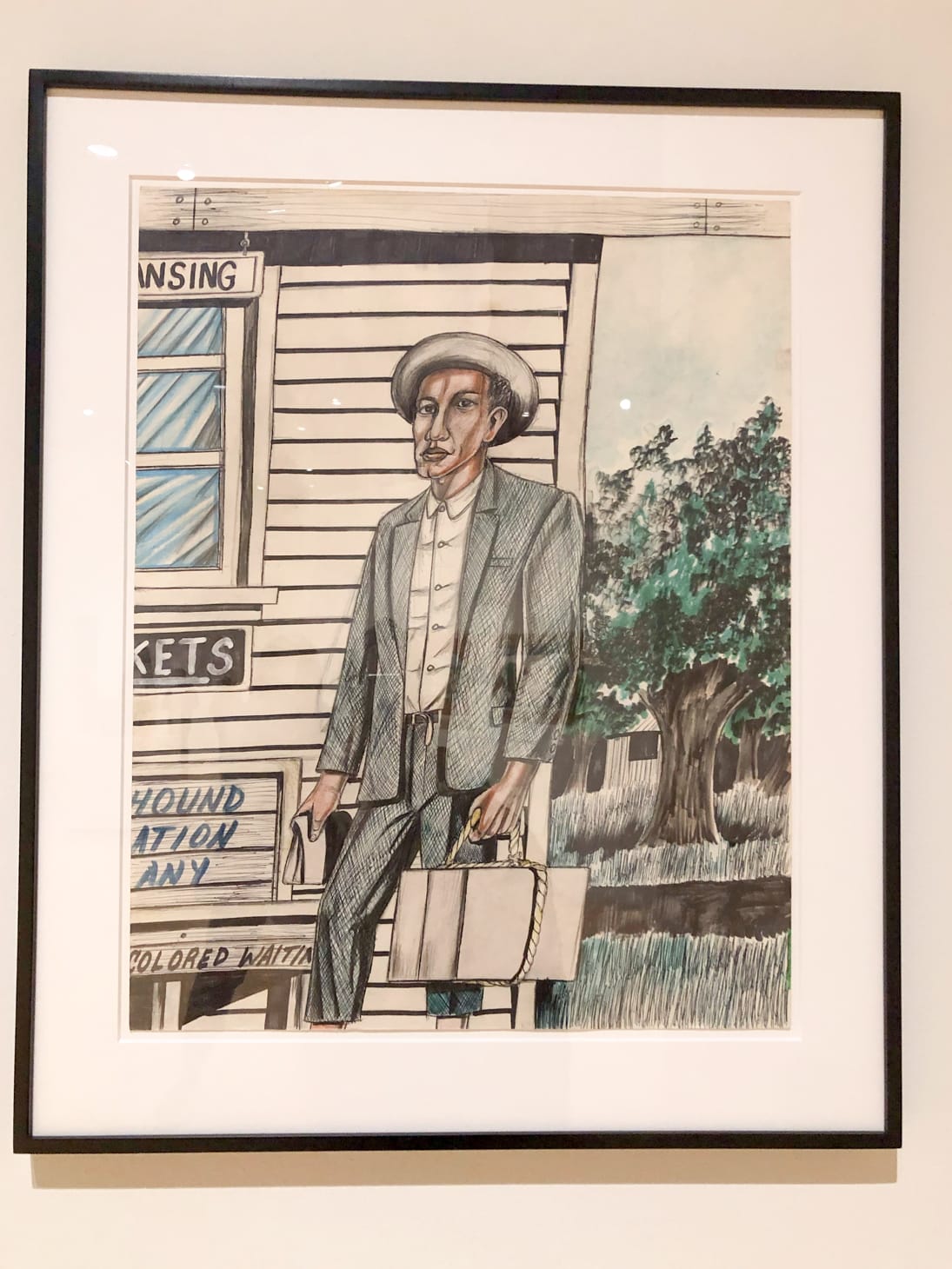 At the California African American Museum (CAAM), Dust My Broom: Southern Vernacular from the Permanent Collection congregates a group of mostly self-taught artists from the American South and other Black artists profoundly influenced by it. (The exhibition’s name originates from the blues tune “Dust My Broom,” the phrase itself stemming from the Depression-era South, meaning to get up and go with no intent to come back.)