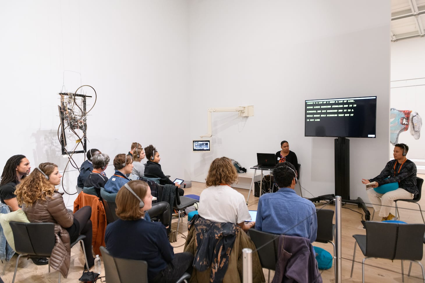 Some examples include a private sound experience for visitors who are blind or low-vision, with artist Kevin Beasley manipulating the sounds from the cotton gin motor in his exhibition A view of a landscape; a week of art-making and storytelling with Pacha, Llaqta, Wasichay artist Jorge González for participants from Youth Insights (YI) Introductions; a program specifically for teens who identify as English Language Learners (ELLs); a protest t-shirt making workshop with 2017 Biennial artist Cauleen Smith, inspired by her powerful banners that hung in the Museum’s lobby; and an intimate reading of Audre Lorde’s The Cancer Journals, led by artist Carolyn Lazard near their 2019 Biennial piece. I am very interested in how these programs and interactions stretch the idea of what museums can do, and who they are for.