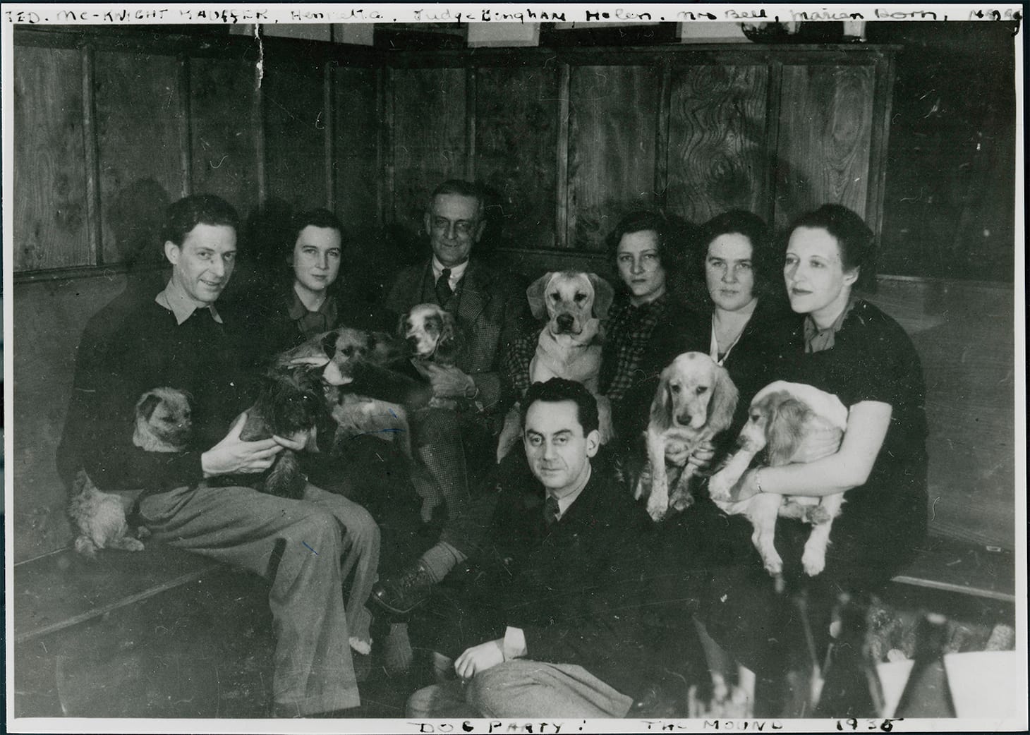 In fact, fleeting opportunities for experiencing Kauffer’s dynamic designs could be found in myriad aspects of contemporary leisure: his set and costume designs for ballets and the theater appeared on stages around the world, his display designs attracted attention in exhibition halls and shop windows, his clever greeting cards filled mailboxes, and his striking packaging sold laundry detergent and textiles. For those clients ready to depart from tradition at home, Kauffer’s designs modernized domestic space; his book jackets lined the shelves of private libraries, his murals and tapestries brought pattern and color to interior walls, and his and Dorn’s carpets lined the floors of some of London’s first modern apartment buildings. The multiplicity of Kauffer’s output, breaking down creative boundaries, contributed to his status as a modern designer. As Francis Meynell reflected, “Kauffer was an example of the abandoned truth that art is indivisible: that a man with the root of the matter in him can paint or design rugs (as he did for Arnold Bennett) or make posters or illustrate books or decorate a room or parti-colour a motor-car (as he did for me) or scheme an advertisement.” Intersecting with the fields of architecture, interior design, literature, publishing, the performing arts, and retail, Kauffer and Dorn’s projects brought them into a network, with some of the most prominent proponents of English modernism — figures including composer Arthur Bliss, architects/designers Serge Chermayeff and Wells Coates, architect and artist Frederick Etchells, fashion journalist Madge Garland, artist and interior designer Curtis Moffatt, playwright George Bernard Shaw, and choreographer Ninette de Valois.