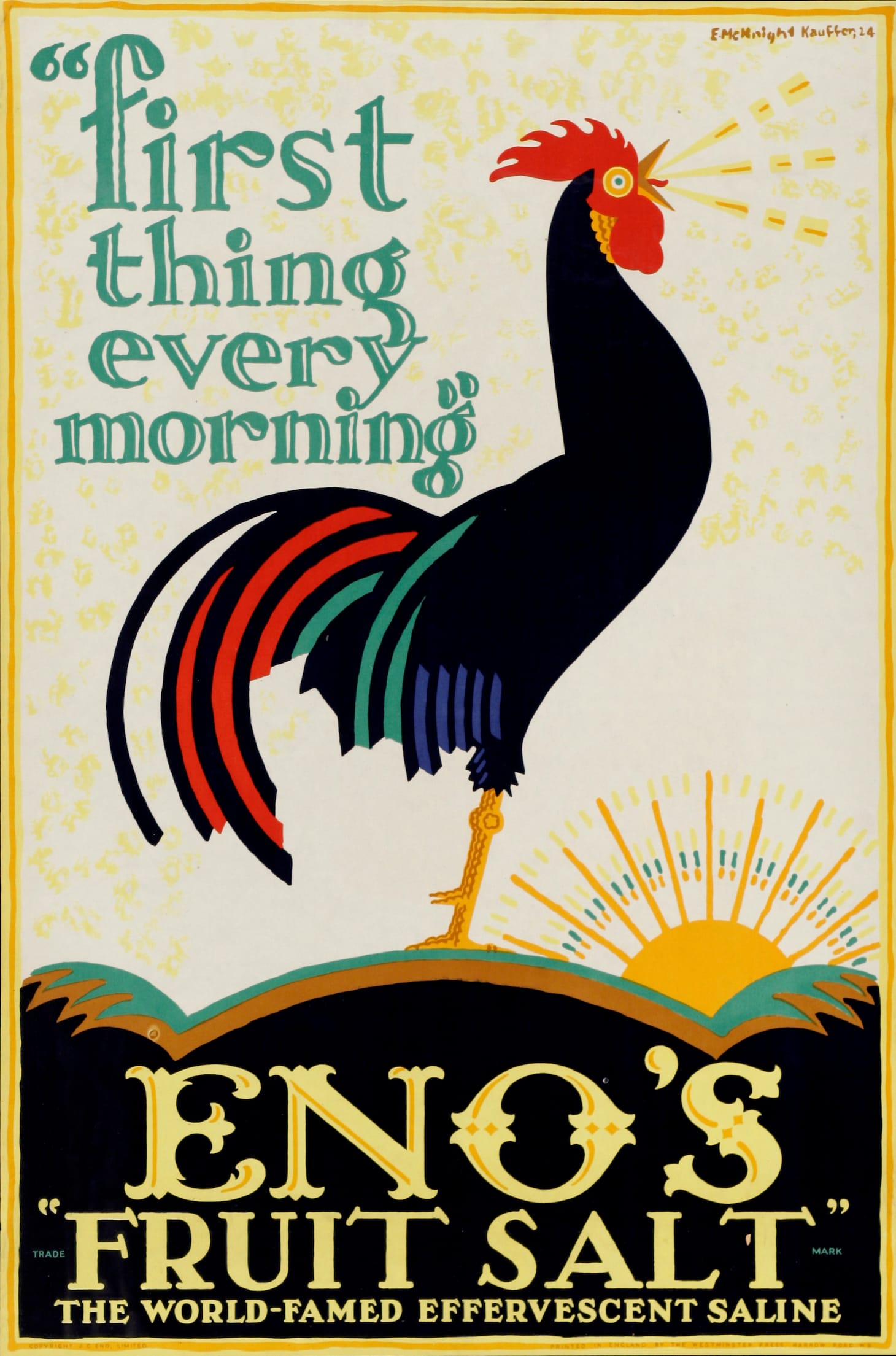 In many respects, Kauffer remained an expatriate on both sides of the Atlantic: an American designer in Britain, a British designer in America. Although this lack of belonging took its toll on those he loved and on those who loved him, it was his stubborn resistance to settling that was the wellspring of his talent. He was always seeking something new, and he thrived when given the opportunity to use his creative abilities for the betterment of all. His firm belief that design was a responsibility distinguished him, for he held equal respect for the advertiser and the public. He took to heart the privilege of communication with all people in the fleeting moments of their lives. Kauffer was a modern designer for modern life.