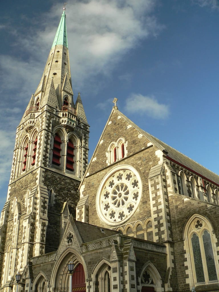 An earthquake in ChristChurch, New Zealand this Tuesday February 22 has damaged the city’s iconic works of architecture, including the Christchurch Cathedral and the Catholic Cathedral of the Blessed Sacrament. At least 65 people have been killed by the earthquake, though the number is expected to rise.