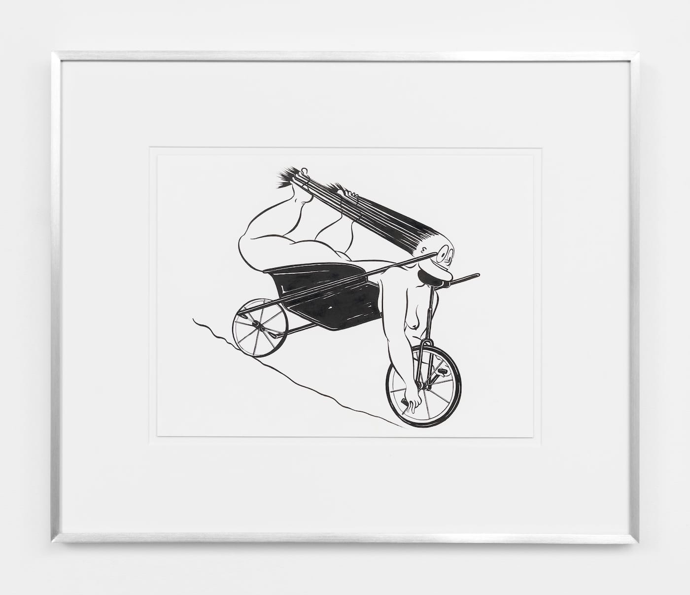 This is one thing that sets Muslimova apart from other artists working graphically, often in black-and white. I am thinking of Raymond Pettibon and Steve Gianakos. The shame and embarrassment that Gianakos’s figures suffer through don’t invite the viewer’s empathy. Pettibon and Gianakos make work that is confrontational and, frankly, male. In Fatebe’s world, there are no men: they are irrelevant.