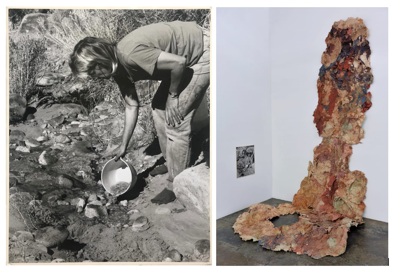 Betsy Damon’s “The Memory of Clean Water” (1985) is another such touchstone. Using handmade paper pulp, Damon made a 250-foot cast of Utah’s Castle Creek riverbed before the river was dammed. The sculpture climbs the gallery walls and spills onto the floor. It is as delicate as it is massive, its fragile multicolored surface pockmarked with small holes and natural detritus. Damon made the work with a traditional art context in mind. However, when she learned about pollutants in the river she “woke up”, realizing that she wanted to turn her focus toward community organizing, teaching, and founding a water-related nonprofit. The sculpture is a landmark work in Damon’s oeuvre, but it also signifies a moment of reckoning in which she decided that her activism had to employ new tactics and take new forms to be effective.