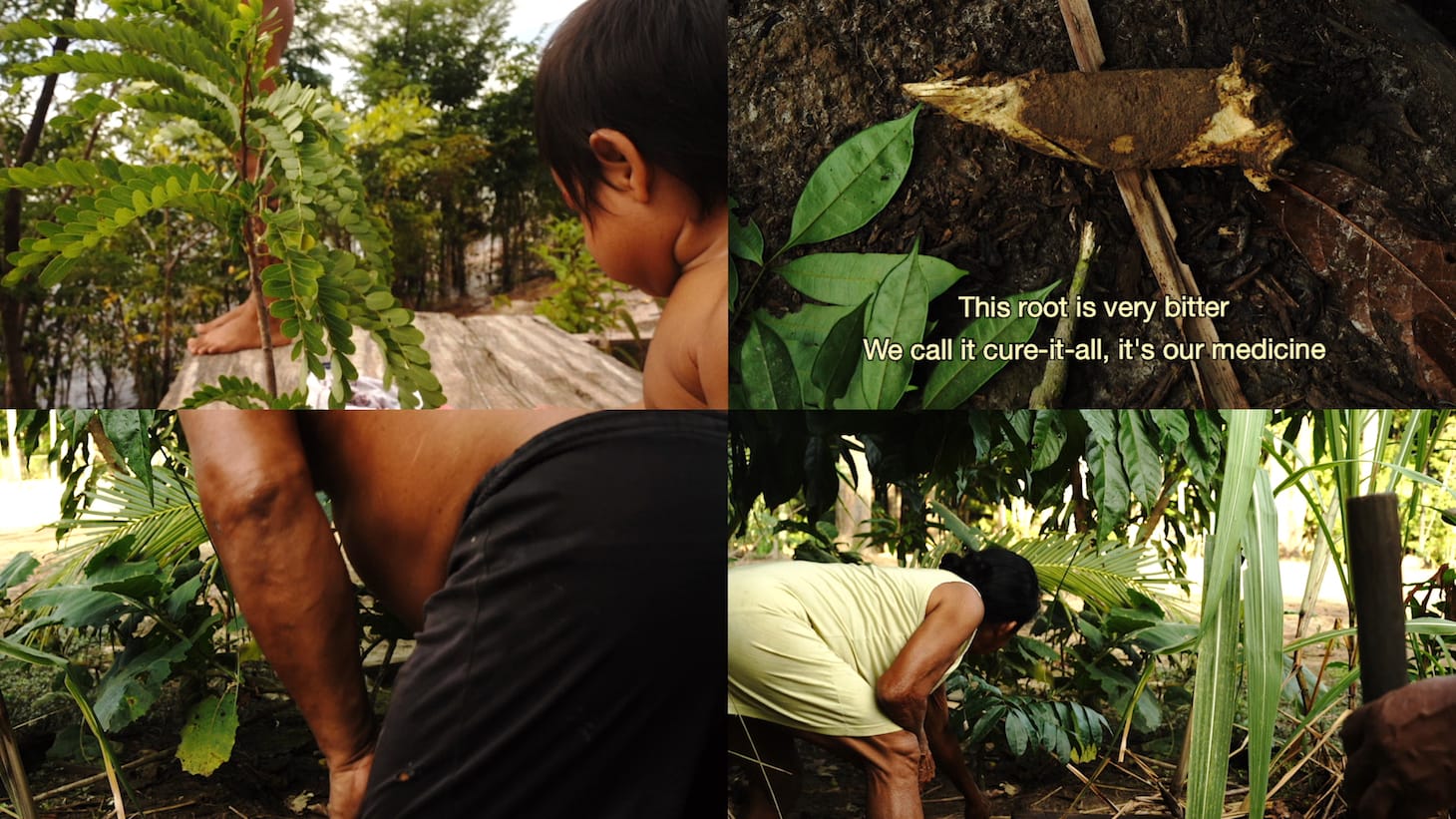 Intersectionality is at ecofeminism’s core, and environmental racism — the fact that BIPOC communities are disproportionately affected by environmental degradation — is central to its project. Brazilian artist Carla Maldonado collaborated with the Cipiá Indigenous Community Center in Manaus to make “Dystopia of a Jungle City, and the Human of Nature” (2019). Alternately four- and single-channel, the video pairs footage of the Indigenous community’s day-to-day life with layered forest sounds. A voiceover by Maldonado explains that, under Brazil’s far-right president Jair Bolsonaro, private-sector development is rapidly deforesting the Amazon as protections for the Amazon’s Indigenous peoples are being pared back.