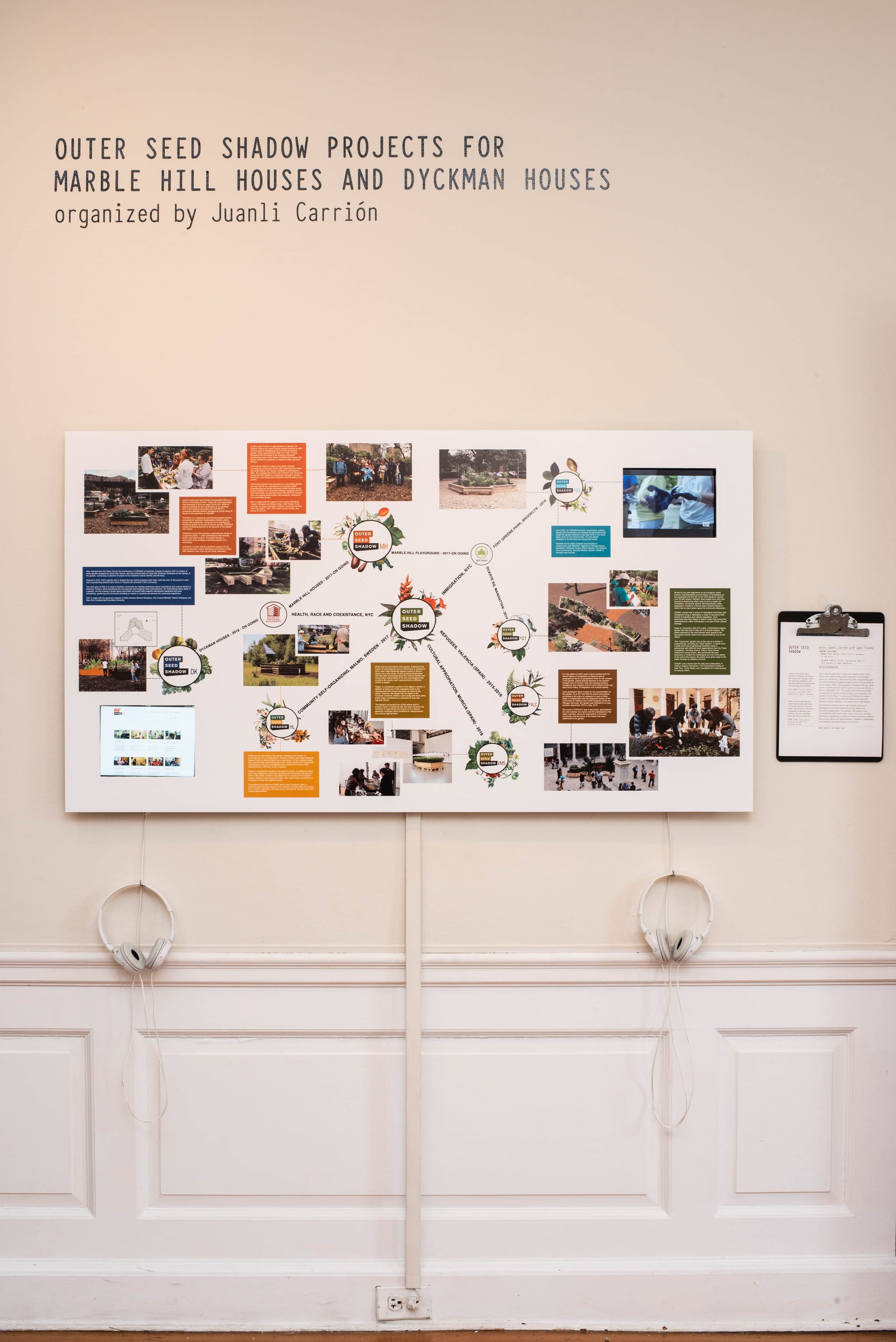 Juanli Carrión’s and Jacki Fisher’s inviting Outer Seed Shadow (OSS) initiative exemplifies this collaborative ethos. The recently incorporated nonprofit organization commissions artists to build gardens in partnership with local communities. Conceived as “living sculptures,” the gardens host a range of topical programming, such as readings, panels, and performances, as well as workshops on gardening and cooking. The term “outer seed shadow” refers to a botanical phenomenon in which a plant has been introduced into a new ecosystem but, due to adverse conditions, cannot reproduce itself and become part of that system. It’s a fitting metaphor for how OSS tends to the conditions under which human communities, especially transplanted minority communities, languish or thrive.