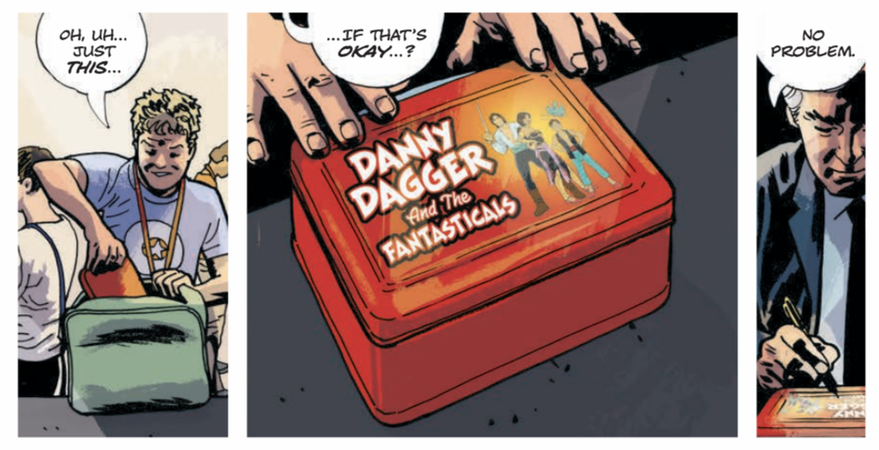 EB: An idea that I’d been kicking around for a long time was about an artist at the tail end of his career, going to get an award at a convention, and having to go through his past. And having grown up as a fly on the wall at Comic-Con, and then spending years as a pro at conventions, I just know that world so well. And you know, all parts of the industry converge at the big conventions, so it’s really perfect. Conventions are exhausting, and you run into old friends and coworkers constantly. Or even old enemies sometimes.