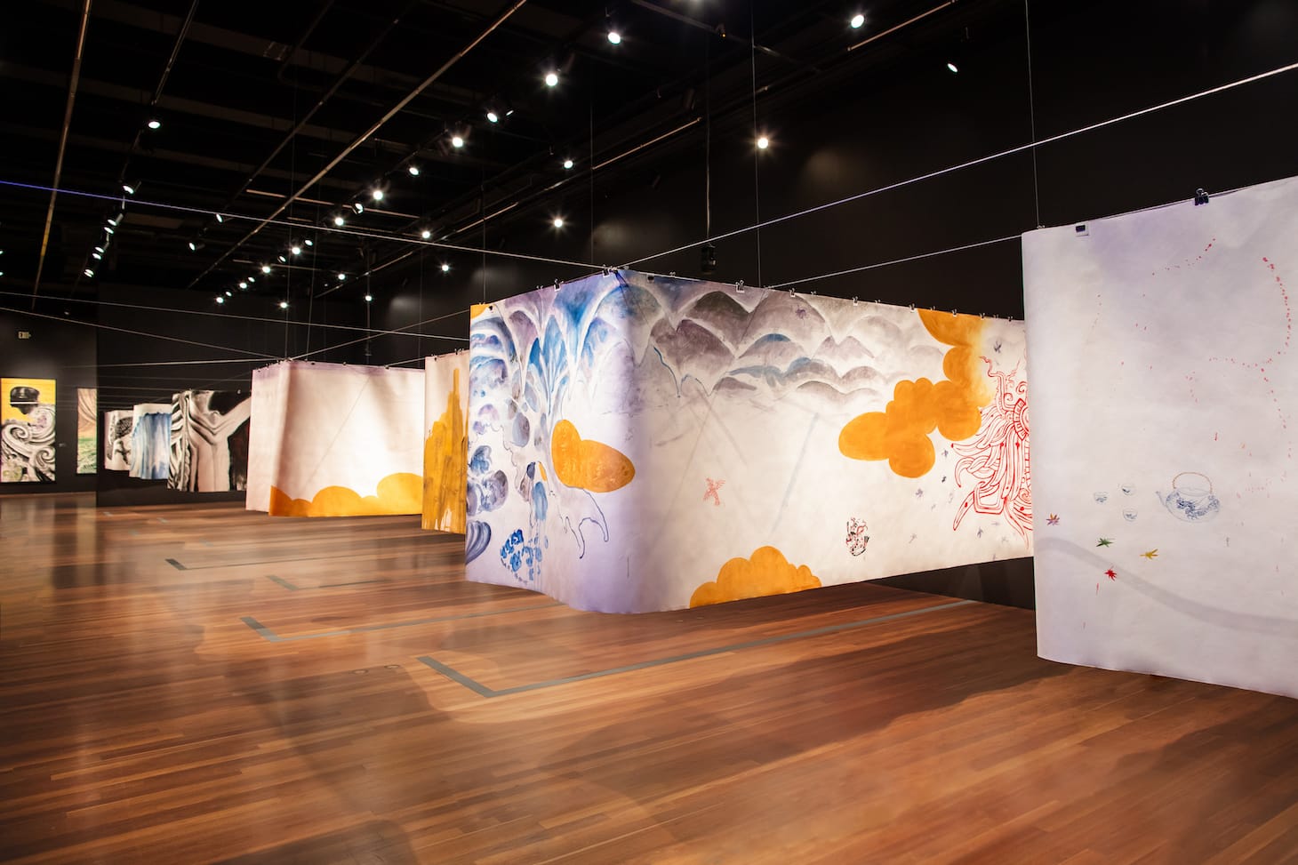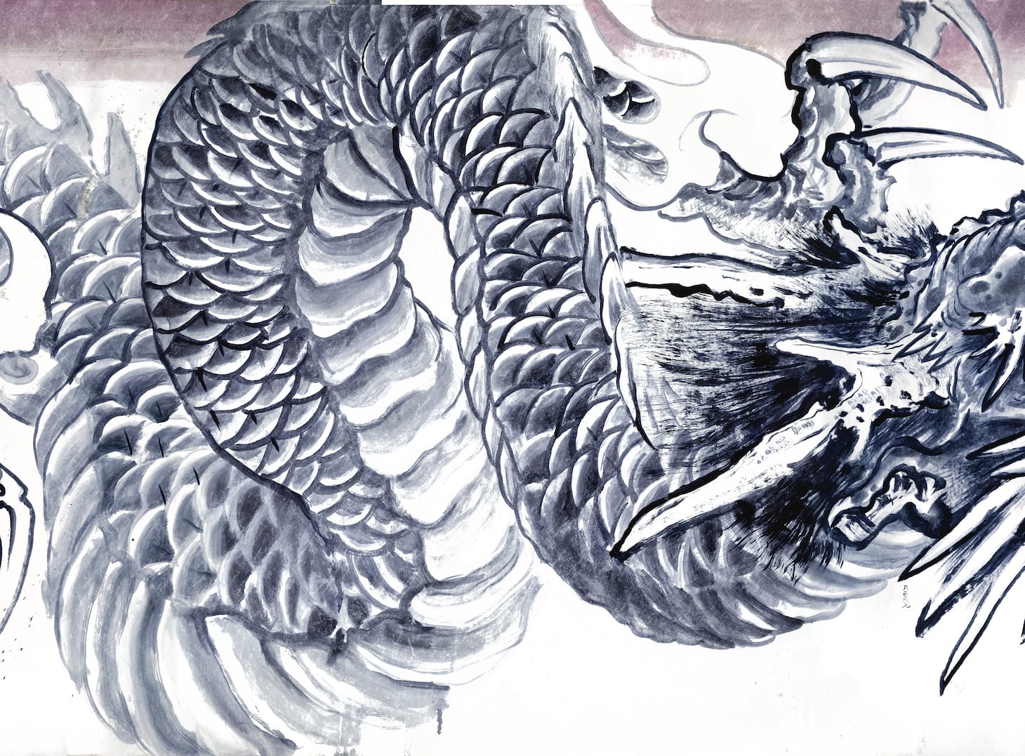 After working on the scroll, Hardy began focusing more on fine art — he retired from tattooing in 2008. The museum displays some of his recent paintings from his Immortals series, inspired by classical Chinese artworks of mountain settings.