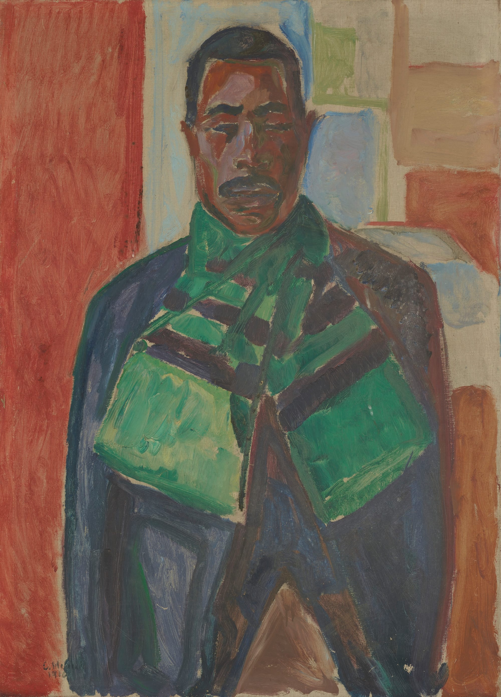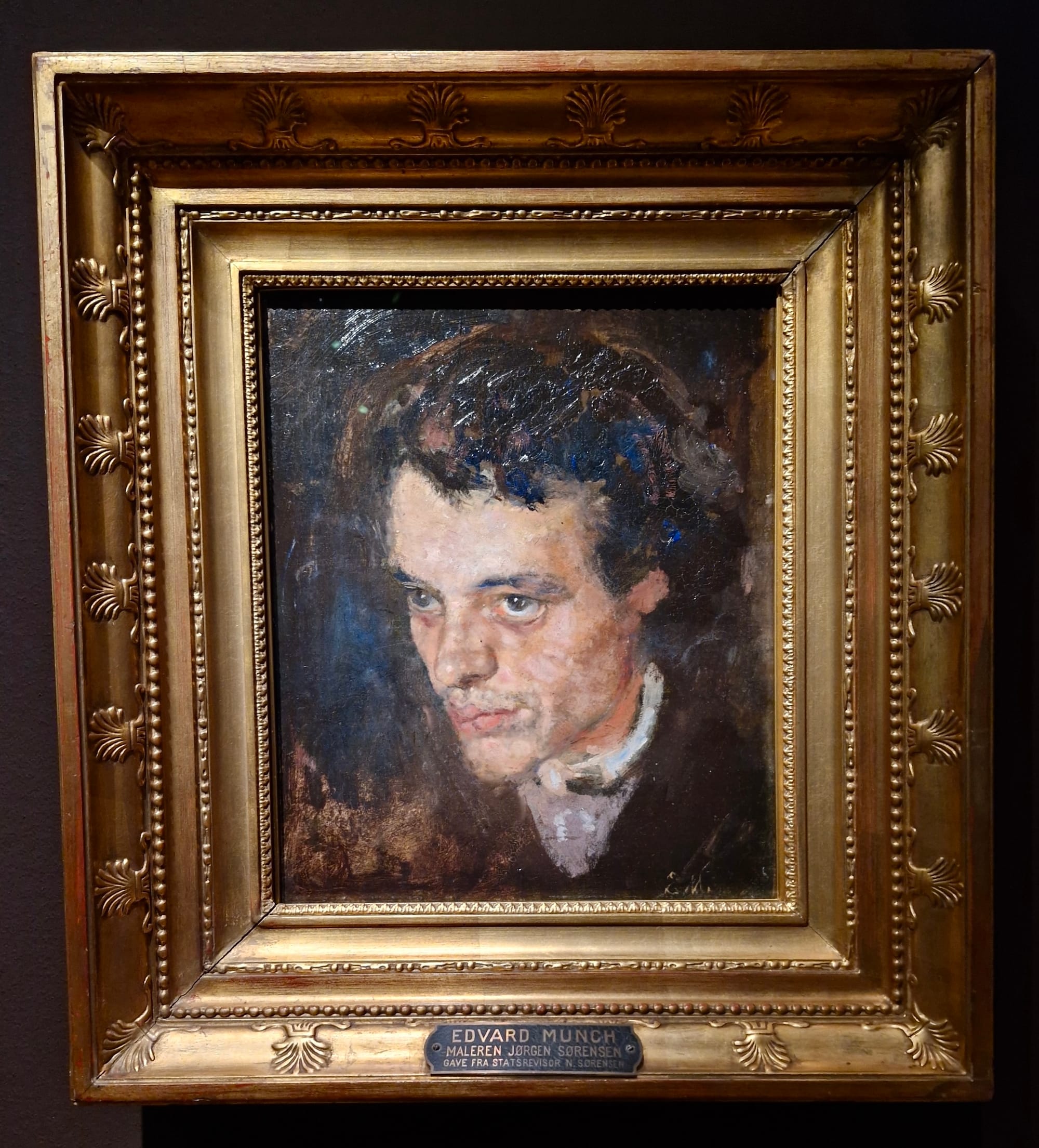 One may be surprised to learn that Munch produced hundreds of portraits, and the number on display here is generous. The range of skill and experimentation is evident from the start. In an early self-portrait from 1882, when the artist was 19 years old, and a portrait of his friend and landscape painter Jørgen Sørensen from 1885, Munch used a more traditionally representational form of faceted modelling — delineating the contours of forms into shaded areas — to create depth and dimension, with naturalistic tones of muted earth and light. A nearby 1886 study of his brother, on the other hand, is a hard-edged linear work characterized by tonally lighter, more saturated block colour; a depiction of his sister in “Evening” (1888) dispels of facets for a more dappled application. Throughout all is a keen understanding of light.
