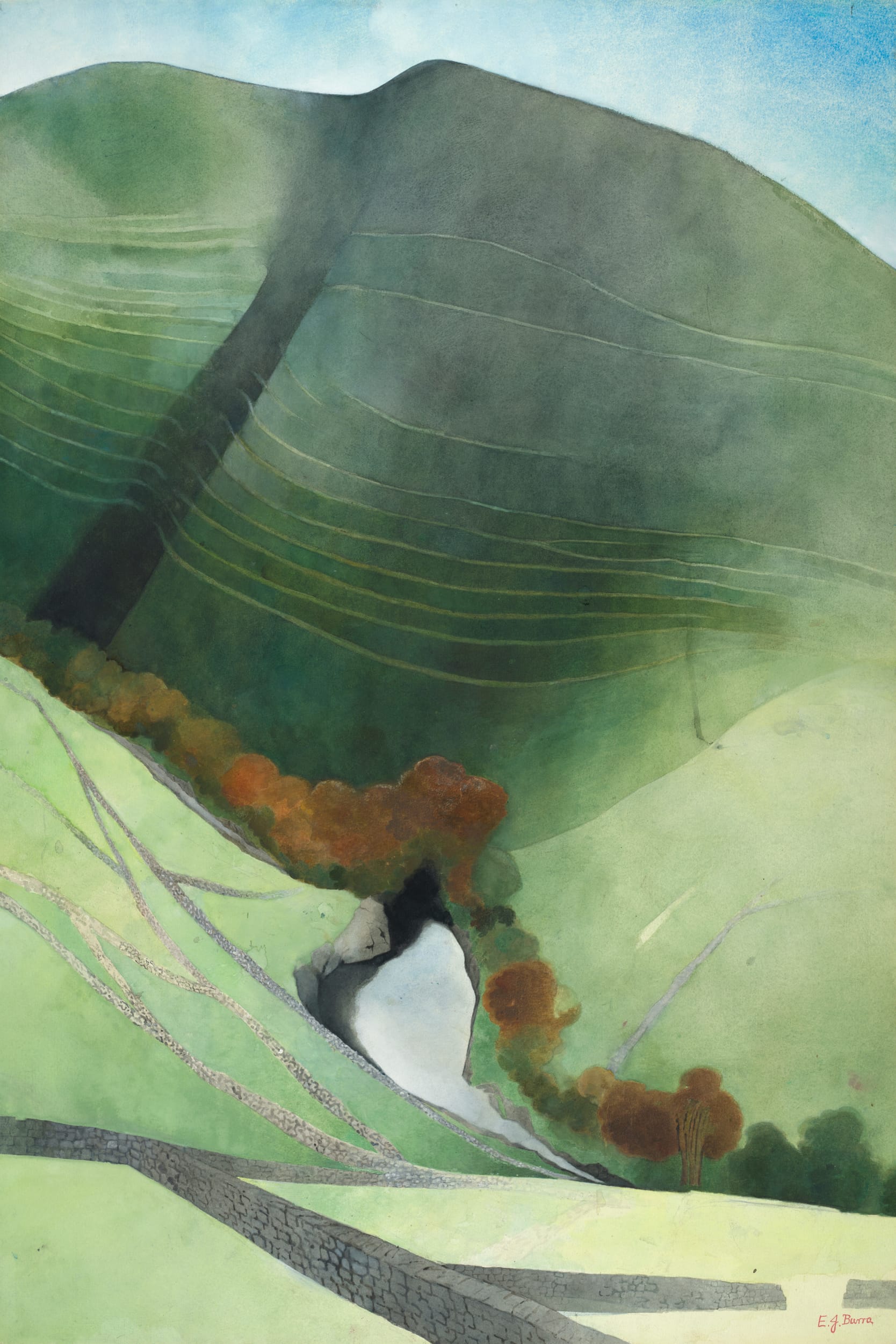 At the end he returns to England and tries to work up some response to the puff-smoke of industry and the grit of working-class street life. Rude boys kick out in unison, like stiff performers on a stage. These paintings don’t quite convince — the old energy has left him. Burra can no longer dig deep enough.