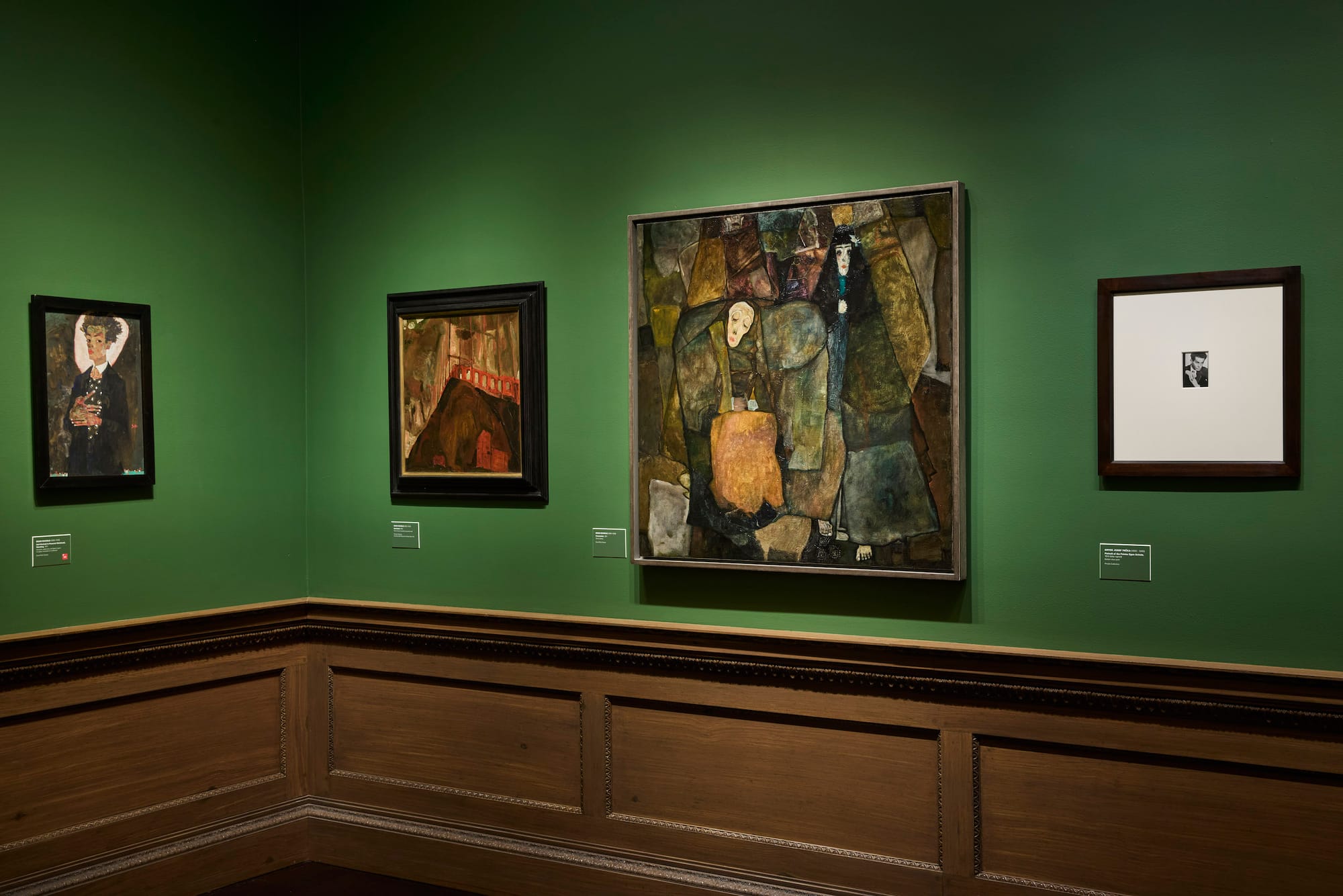 Schiele’s projection in his art of impending doom could have been a result of youthful angst, or of an apocalyptic dread anticipating the First World War, when the Austro-Hungarian Empire collapsed. It might also have been a symptom of personal strife. As a child, his father attempted suicide before succumbing to syphilis, leaving his family in financial ruin. The artist often depicted adolescent sexuality, as exemplified in portraits of his younger sister, Gerti. While living in the country with Wally Neuzil, Schiele was jailed for 24 days for the display of obscene imagery. His love affair with Neuzil was ill-fated. He wrote in a 1914 letter, “I’m planning to marry – most advantageously, perhaps not Wal[ly].” He ultimately married someone richer, Edith Harms, who was pregnant when she passed away of influenza a few days before the artist.