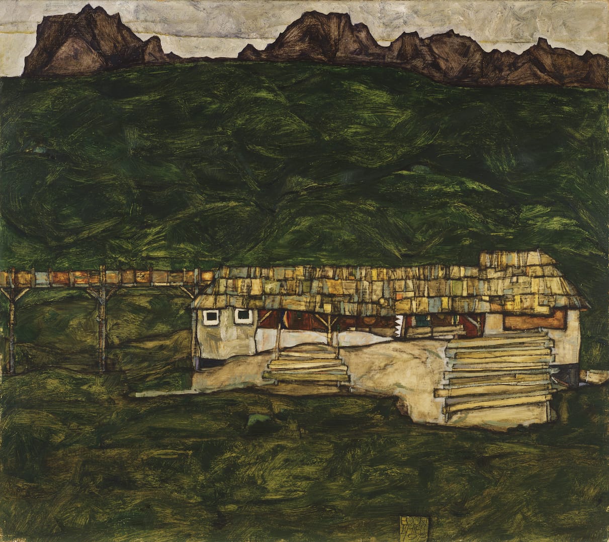 Still, Schiele was adamant about his preference for country life, writing in a characteristically narcissistic tone, “Everybody is envious of me and deceitful; former colleagues look at me with dissembling eyes, in Vienna there is only shadow, the city is black, everything is done by recipe.”