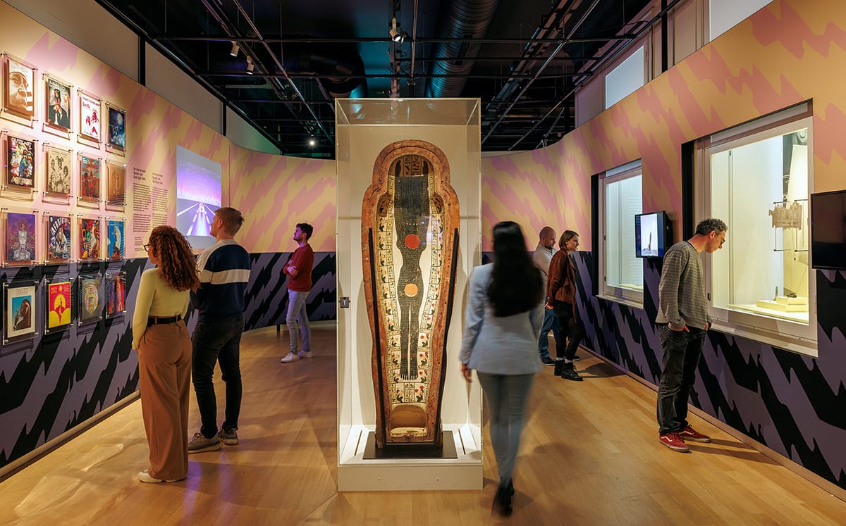 Kemet was what Ancient Egyptians used to call their territory during the Old Kingdom and is said to translate to "black land," a reference to the fertile soil of the Nile Delta. The exhibition drew from this word and how the richness of this ancient culture has been reinterpreted and celebrated by the likes of Miles Davis, Nas, Erykah Badu, Nina Simone, and other household names in the Black American music scene over the decades. The exhibition includes iconic posters and album covers and songs by these and other artists who are evidently influenced by Ancient Egyptian motifs and historical figures, such as Rihanna's and Beyoncé's portrayals as Queen Nefertiti and jazz group Sun Ra Arkestra's interpretation of Egyptian themes in its Afrofuturist sound and imagery.