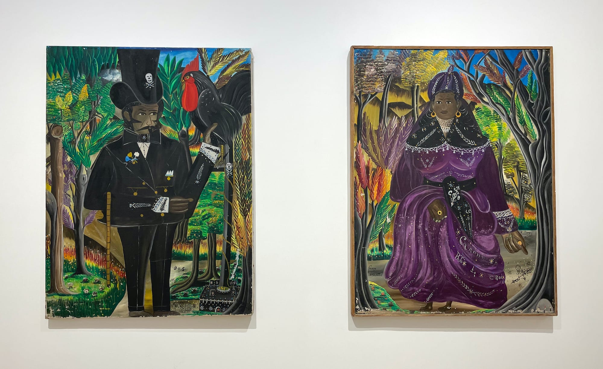 A collaboration between Luhring Augustine, El-Saieh Gallery in Port-au-Prince, and CENTRAL FINE in Miami Beach, Ayiti Toma II, organized by artist Tomm El-Saieh, immediately stands out for its striking visuals. Jewel hues and sparkling sequins share space with figural iron cut-outs and intricate psychedelic scenes. The work in this stunning exhibition of Haitian artists across generations is also a fascinating lesson in the country’s rich art history and, in turn, its cultural and political history. Searing historical images by the likes of brothers Philomé and Sénèque Obin, who pioneered the Cap-Haïtien school of painting, sit alongside works by contemporary artists, including Myrlande Constant’s textile works, inspired by the Drapo flags of Haitian Voudou, and mixed media sculptures titles “Zwazo” (“bird” in Haitian creole) by Jean Hérard Celeur. Group shows can be a mishmash but El-Saieh, with the three partnered galleries, beautifully interweaves distinctive artworks into a complementary whole without sacrificing the individual aesthetic or message of each artist. It’s hard to single anything out, but Constant’s shimmering sequined and beaded banners and André Pierre’s commanding portraits are mesmerizing. —NH