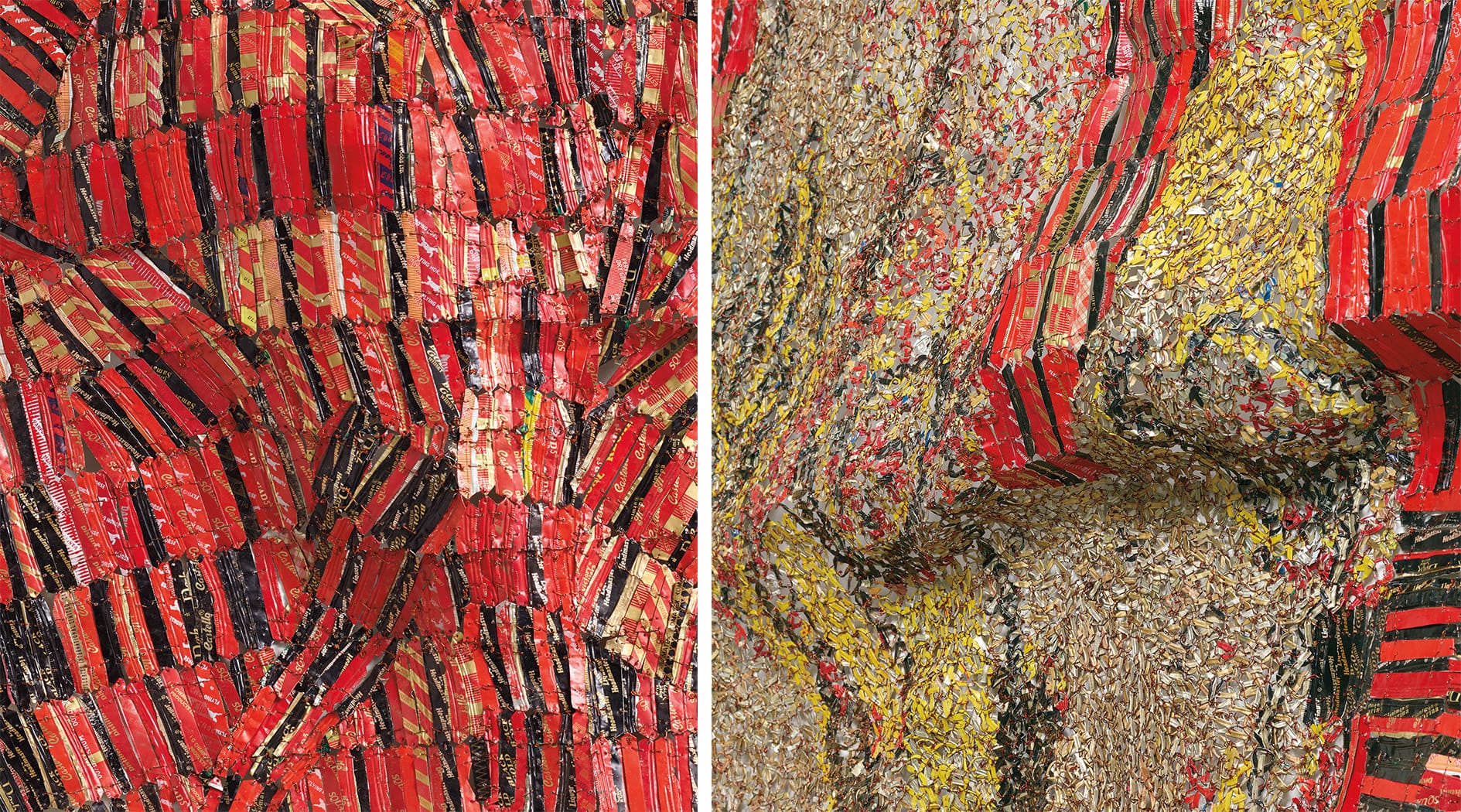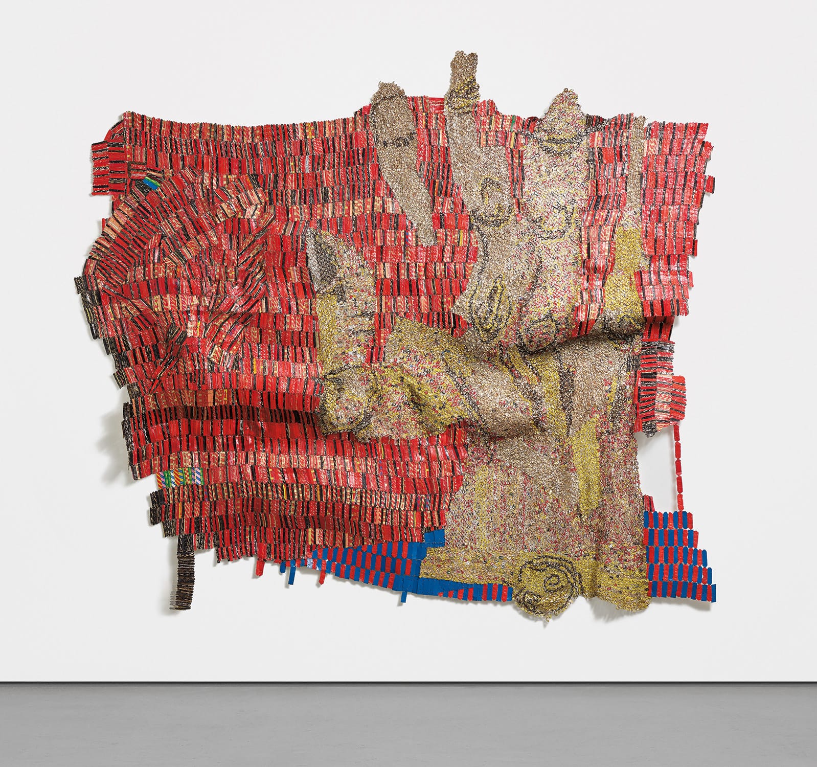 As part of its 20th Century & Contemporary Art Evening & Day Sales this February, Phillips, London, is pleased to present A Vision in Red: Property from a Private Swiss Collection comprising six energetic works, at the center of which is El Anatsui’s “Affirmation” (2014), a wall-mounted installation made up of myriad aluminum bottle caps woven into one vast, shimmering curtain. Also on offer are two lots by Louise Bourgeois, a mixed-media painting by Ghada Amer, a larger-than-life print by Halim Al Karim, and a stainless steel construction by Subodh Gupta.