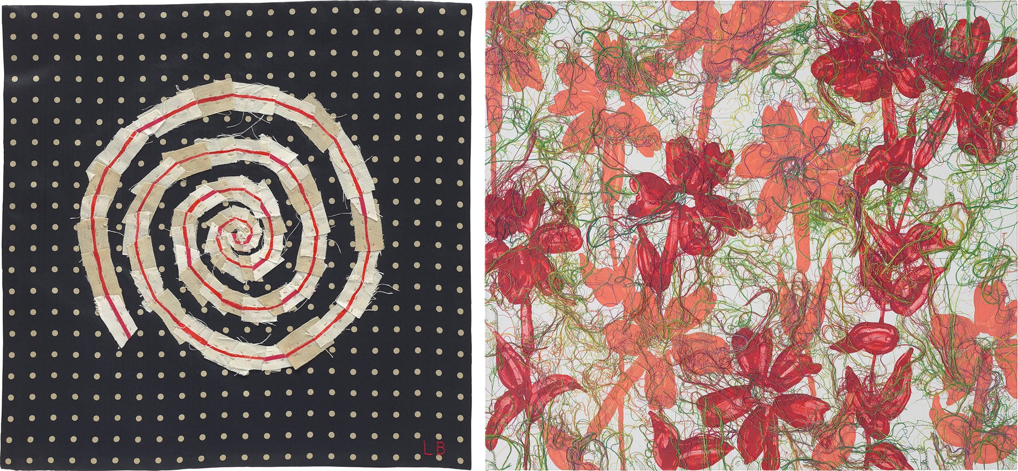 Accompanying Anatsui’s “Affirmation” in A Vision in Red are five works in the Phillips February Day Sale: two pieces by the late Louise Bourgeois, “Untitled” (2006) and “Spiral” (2010), Ghada Amer’s “In Red and pale-RFGA” (2013), Halim Al Karim’s “Untitled 1 (from the King’s Harem series)” (2008), and “Bucket” by Subodh Gupta (2007). Together, the works from A Vision in Red compose an immersive picture of complex materiality and vibrant color, united by their defining tonal dynamism.