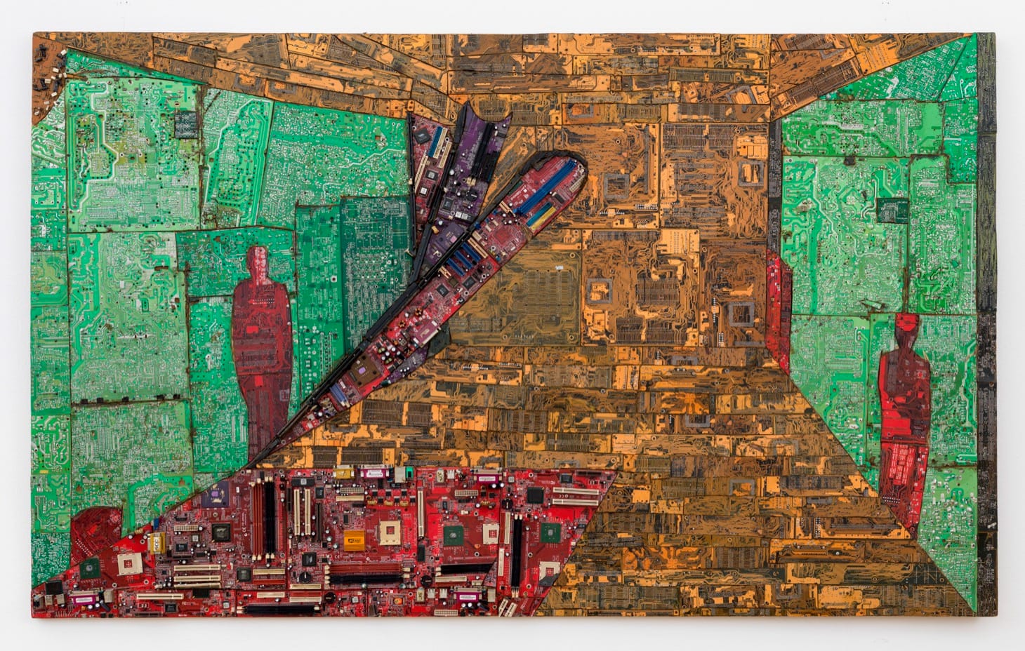 Hyperallergic: We’ve been discussing how your work is not about recycling. It is about telling a story about the kind of close relationship between humans and the electronic, the digital. So what is that relationship?