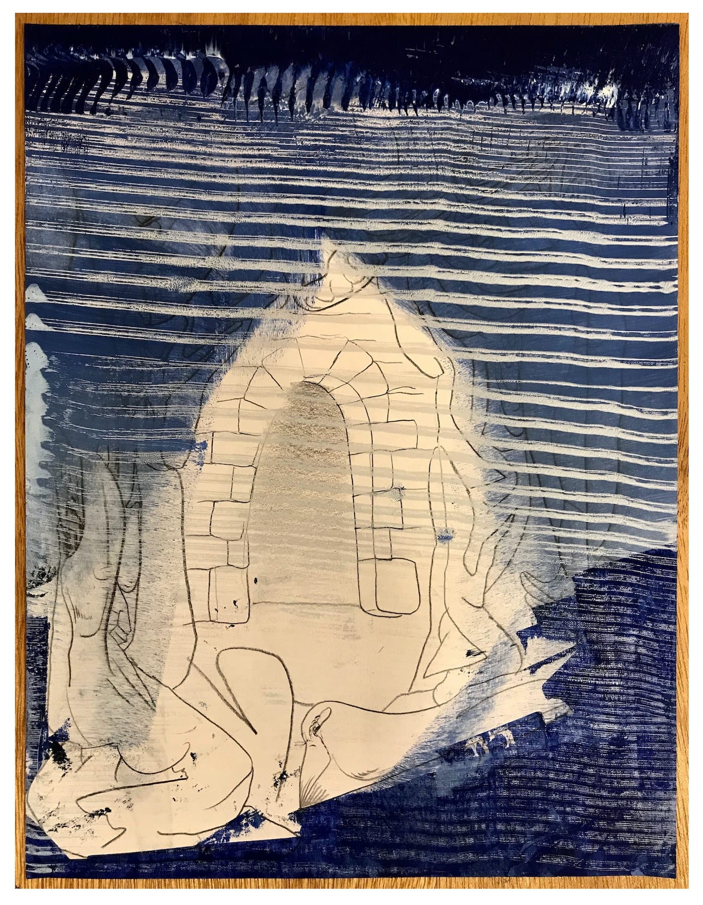 There was always leftover paint that I cleaned up and threw away—until two years ago when I had the idea to press paper onto the wet paint, and it looked like a print, because of the indirect unified texture. I make the impression by pressing over the back of the paper with a drywall knife–it works better than the rubber roller the printmakers use. Sometimes the remnants of my brushstrokes actually look like woodcut texture.