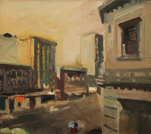 What is missing from this exhibition is an example of the violent seascapes that Bischoff did during the mid-‘60s. A good example is “Blue Clouds” (1963), which is in the collection of the Art Institute of Chicago. However, by including such figurative works as “Figure at Window with Boat” (1964) and the later mythic paintings, “Figure, Boat, Clouds” (1971) and “Figure with Tree” (1972), the exhibition suggests that there are more sides to Bischoff’s figurative paintings than his urban scenes, and the full extent of what he did between 1952 and ’72, is still unknown, particularly on the East Coast.