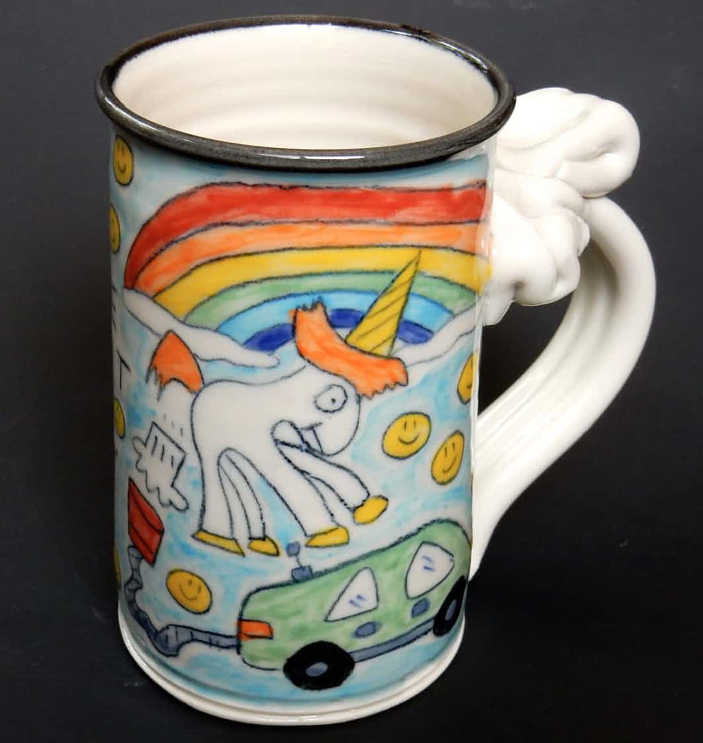 While the phrase “farting unicorn” makes this news — as reported by the Guardian — difficult to take seriously, it is ultimately a high-profile case of the kind of intellectual property theft by which artists are constantly plagued. Musk’s position is legally indefensible, considering a tweet in February of 2017 (since deleted), wherein he acknowledged one of the potter’s mugs, whose design featured the mythological creature powering an electric car by farting into a funnel leading to the gas tank. Musk identified the work as “maybe my favorite mug ever,” and the exposure led to a little boost in sales for Edwards.