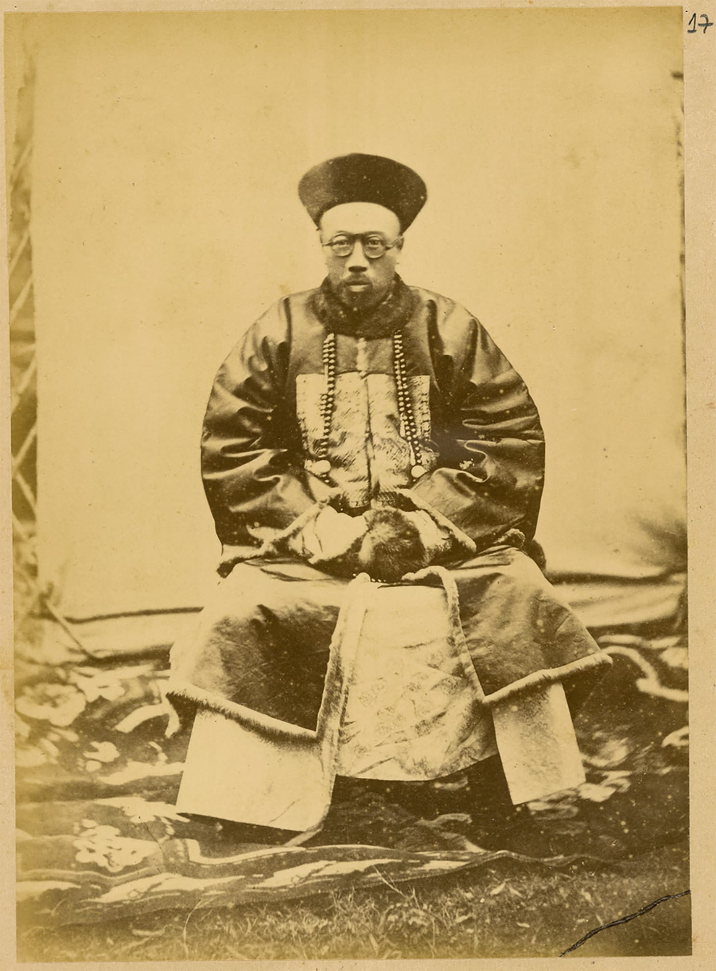 Portrait of Hankou Daotai, a Chinese Official, in Official Winter Uniform with Embroidered Badge of Office on His Chest and Court Beads. Hankou, Hubei Province, China, 1874