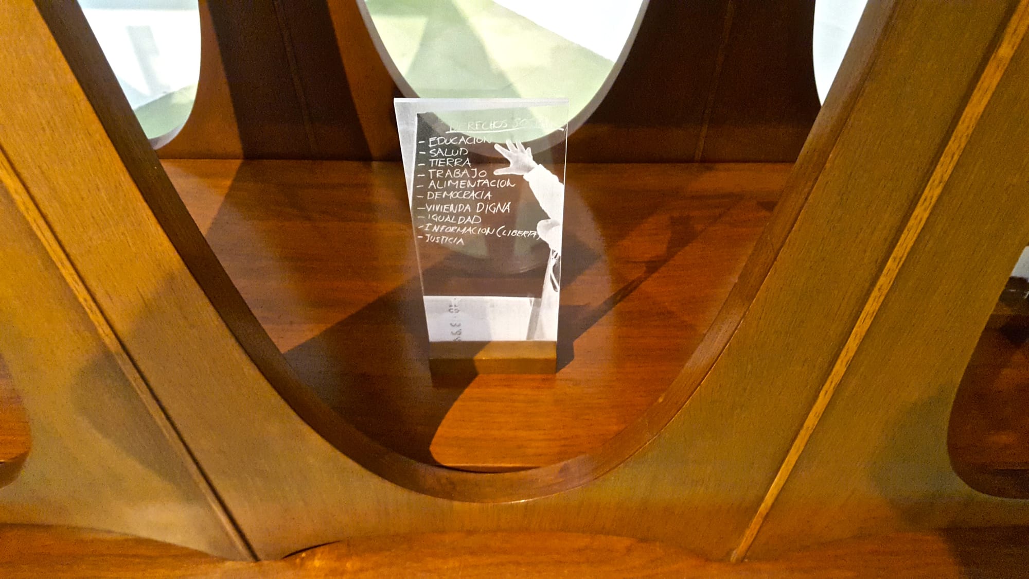 This show was on display, by chance or intention, during the celebration of Dia de Muertos, the annual Mexican celebration of beloved and departed family members (and others felt to be close in spirit). Oaxaca City, and its surrounding pueblos, is an area particularly known for its Dia de Muertos celebrations, which involve the cleaning and dressing of graves in fresh flowers, candles, and food; parades and band jams taking place in the streets; and ofrendas, the traditional altars that are erected temporarily in remembrance of specific loved ones. In this context, it was difficult to see Sandoval’s work as separate from the ofrendas on display everywhere in Oaxaca, from coffee shops to churches to the central plaza. From a painstakingly tidy square comprised of her mother’s carefully folded handkerchiefs, to an assortment of greeting cards and letters addressed to her mother, Sandoval seems to suggest — and perhaps Gallerneaux would agree — that stripped of their quotidian use, they have taken on an otherworldly significance: every object haunted. Every arrangement can serve temporarily to hold these spirits, like an ofrenda, but Sandoval, it seems, is still looking for a place to put them.