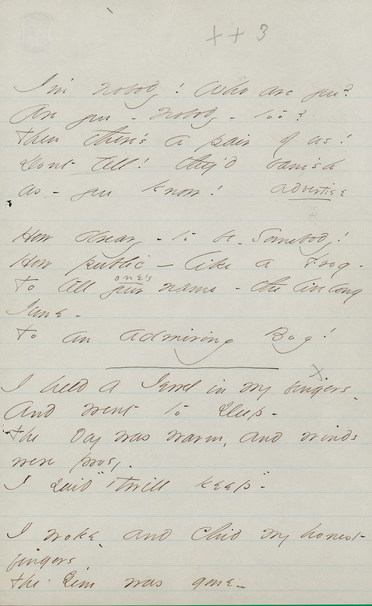 I’m Nobody! Who are you? The Life of Poetry of Emily Dickson continues at the Morgan Library & Museum (225 Madison Ave, Midtown East, Manhattan) through May 28.